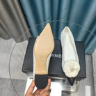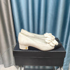 CC MEDIUM HEELS IN WHITE SUEDE AND BLACK CALFSKIN WITH FLOWER