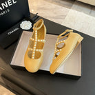 MARY JANES SHOES LIGHT YELLOW GOATSKIN WITH FAUX PEARL