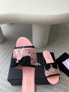 mule sandal pink calfskin glitter sequin