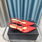 Slingback 50 Red Mesh Calfskin Pointed Toe