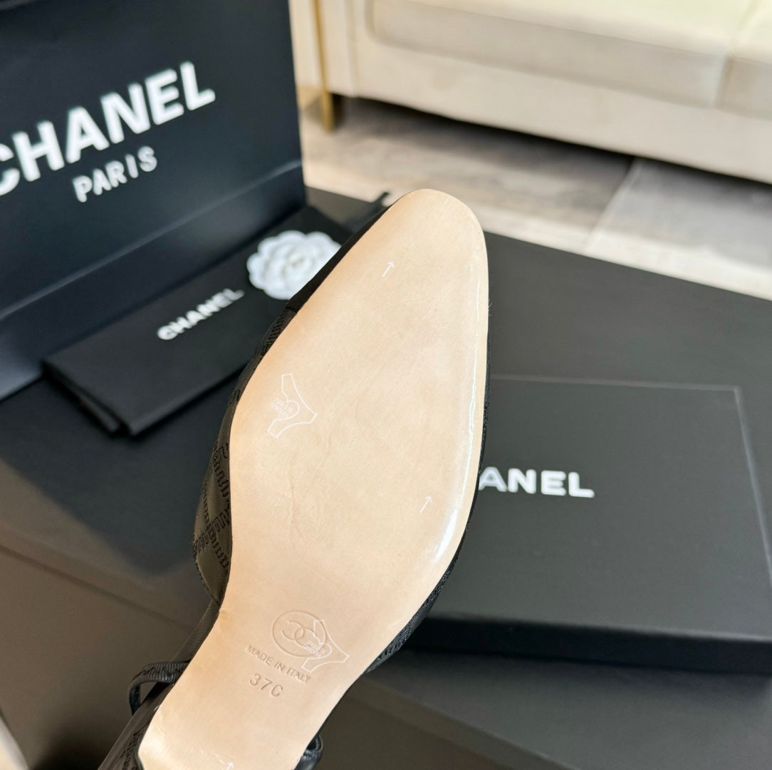 cc slingbacks 65 bow silver metalic lambskin black grosgrain