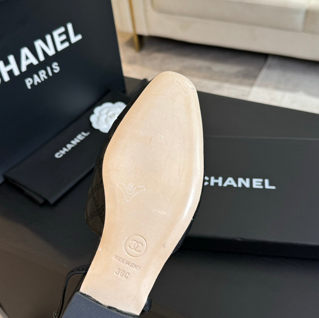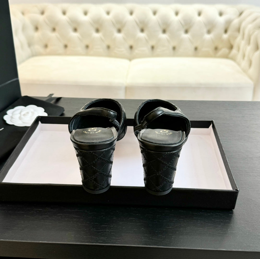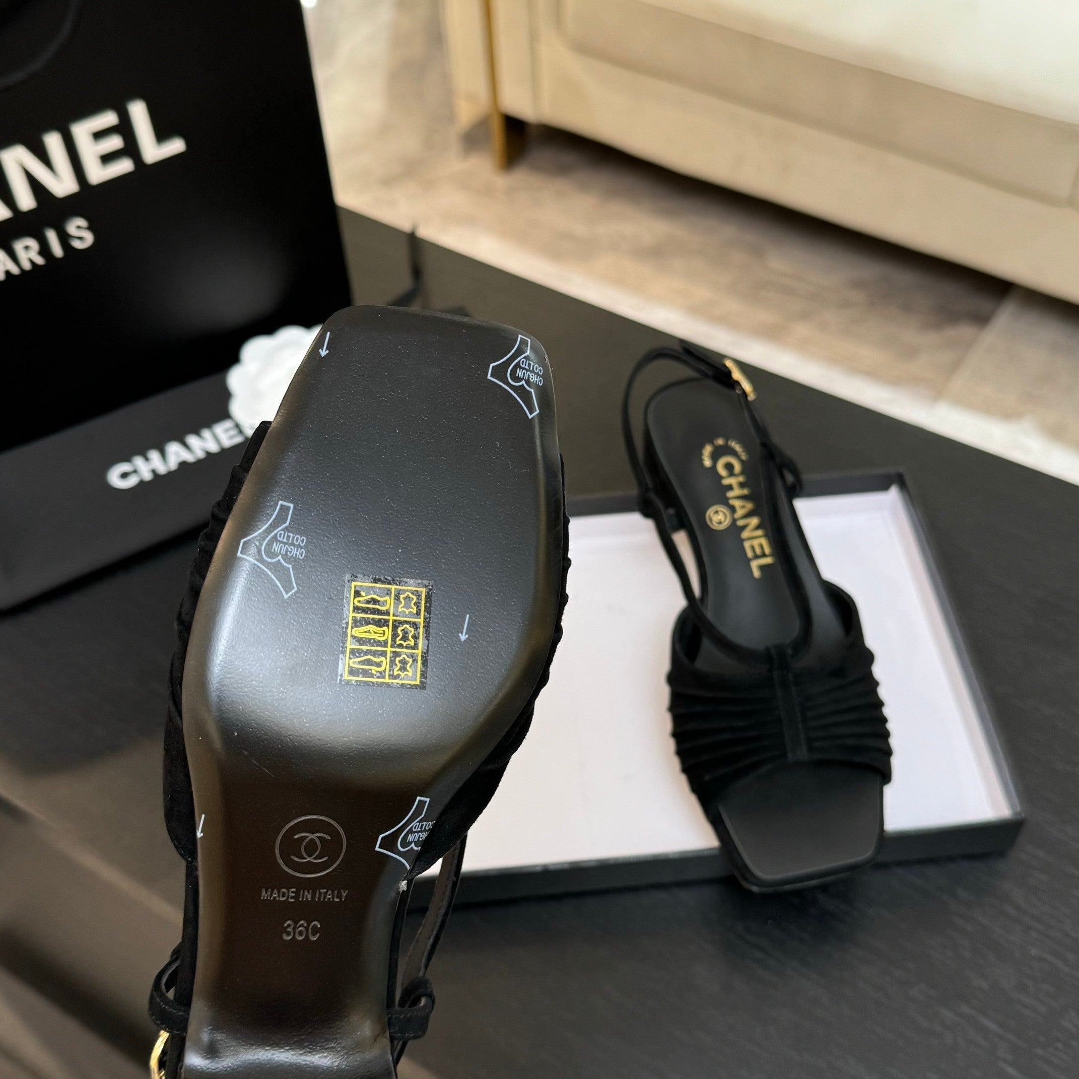 CC 25S Sandal Heel 50mm Black Suede Kidskin Pearl Logo