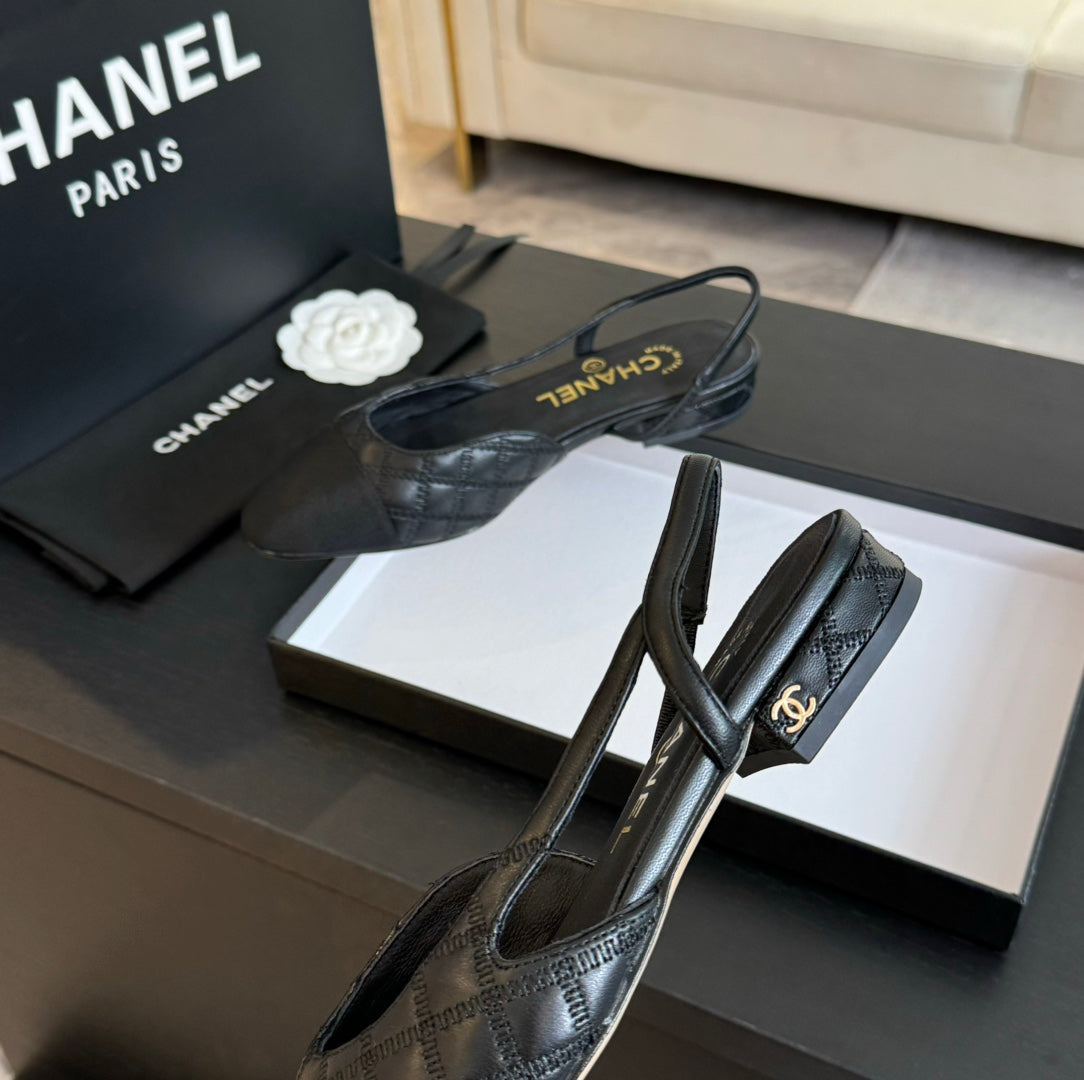 CC 25S Slingback 85mm Black Calfskin Grosgrain