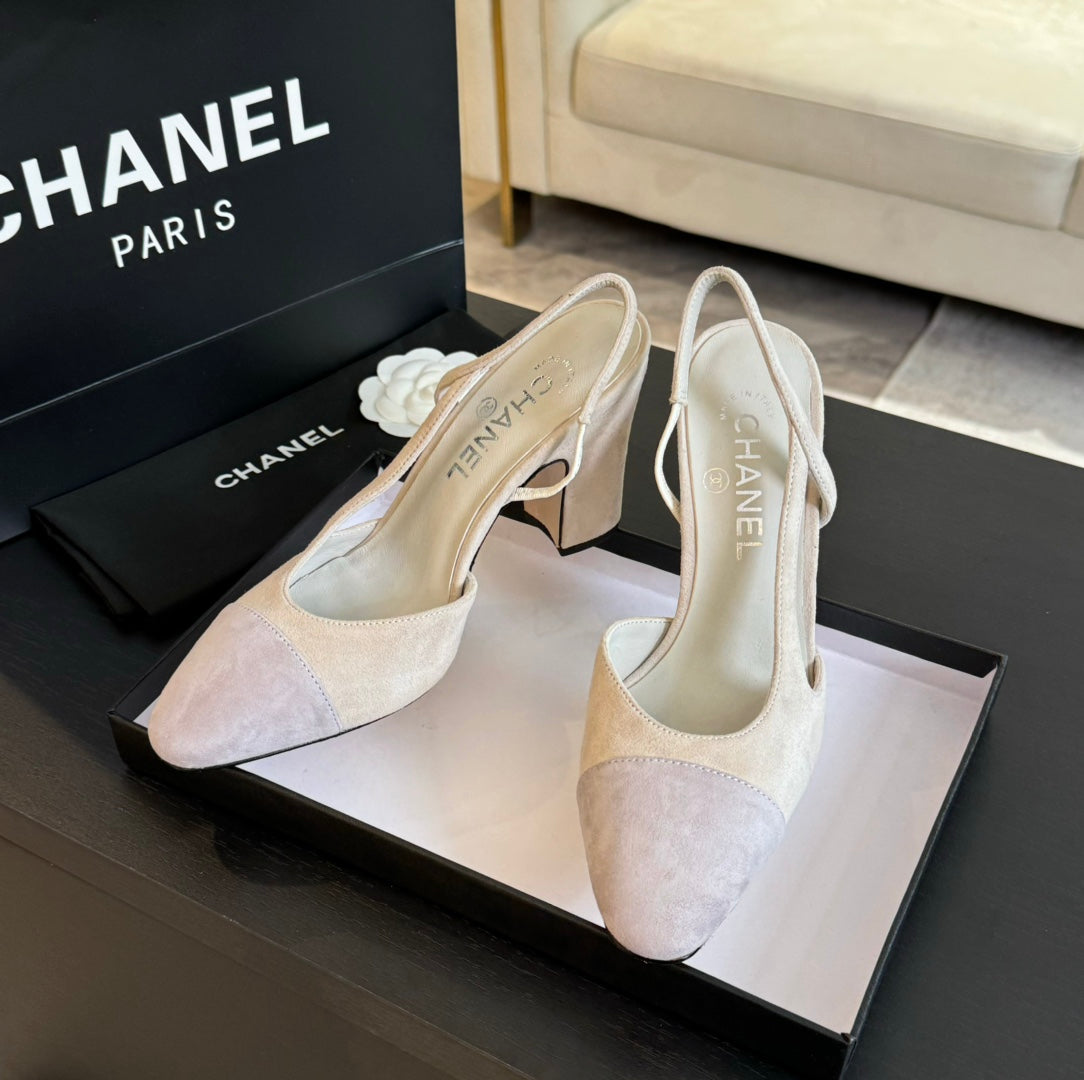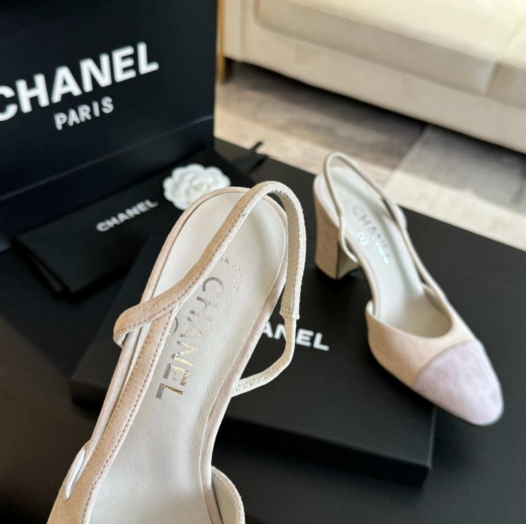 CC 25S Slingback 85mm Beige Calfskin Black Suede
