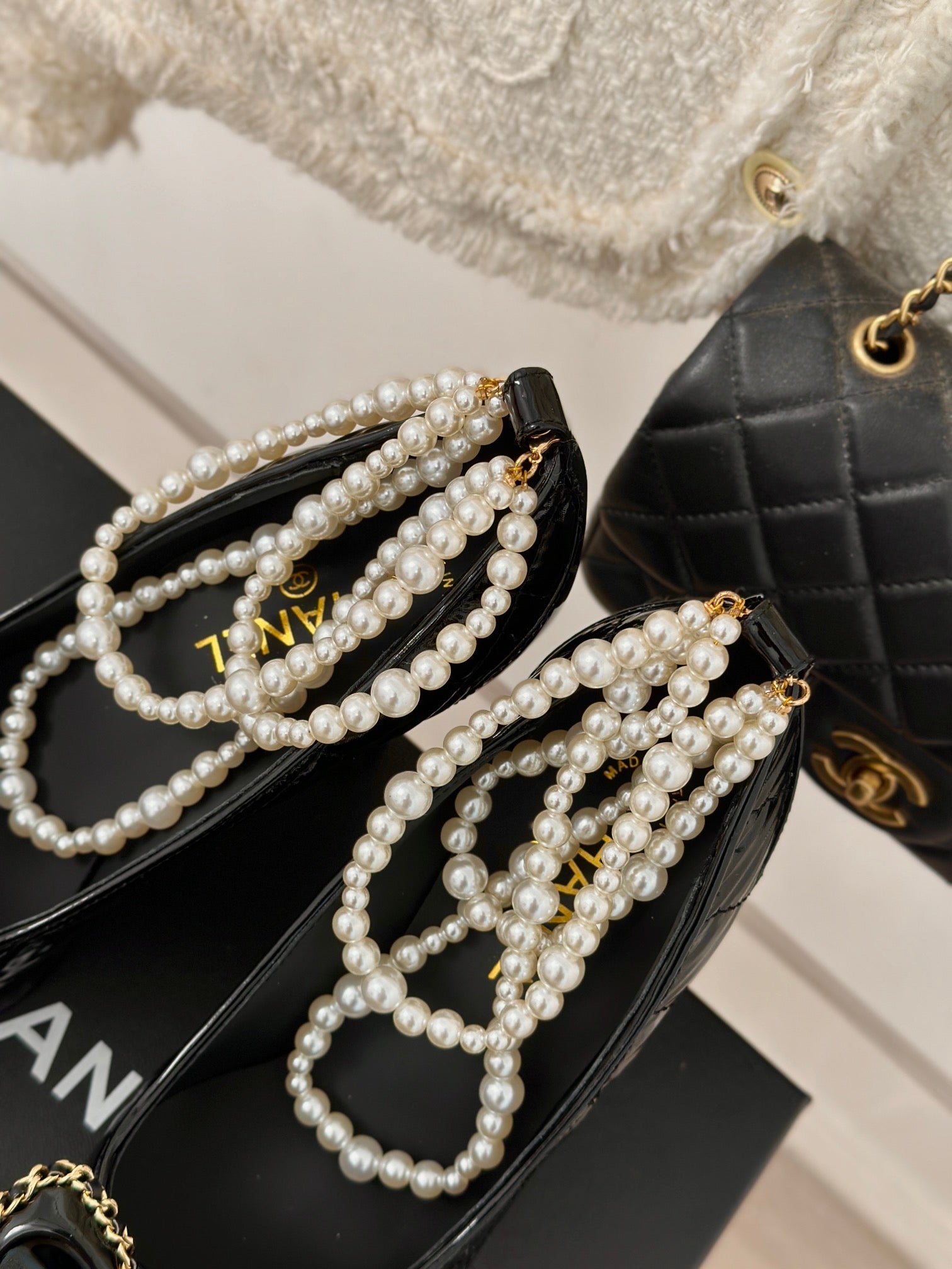 CC High Mary Janes Black Beaded Fabric And Lambskin