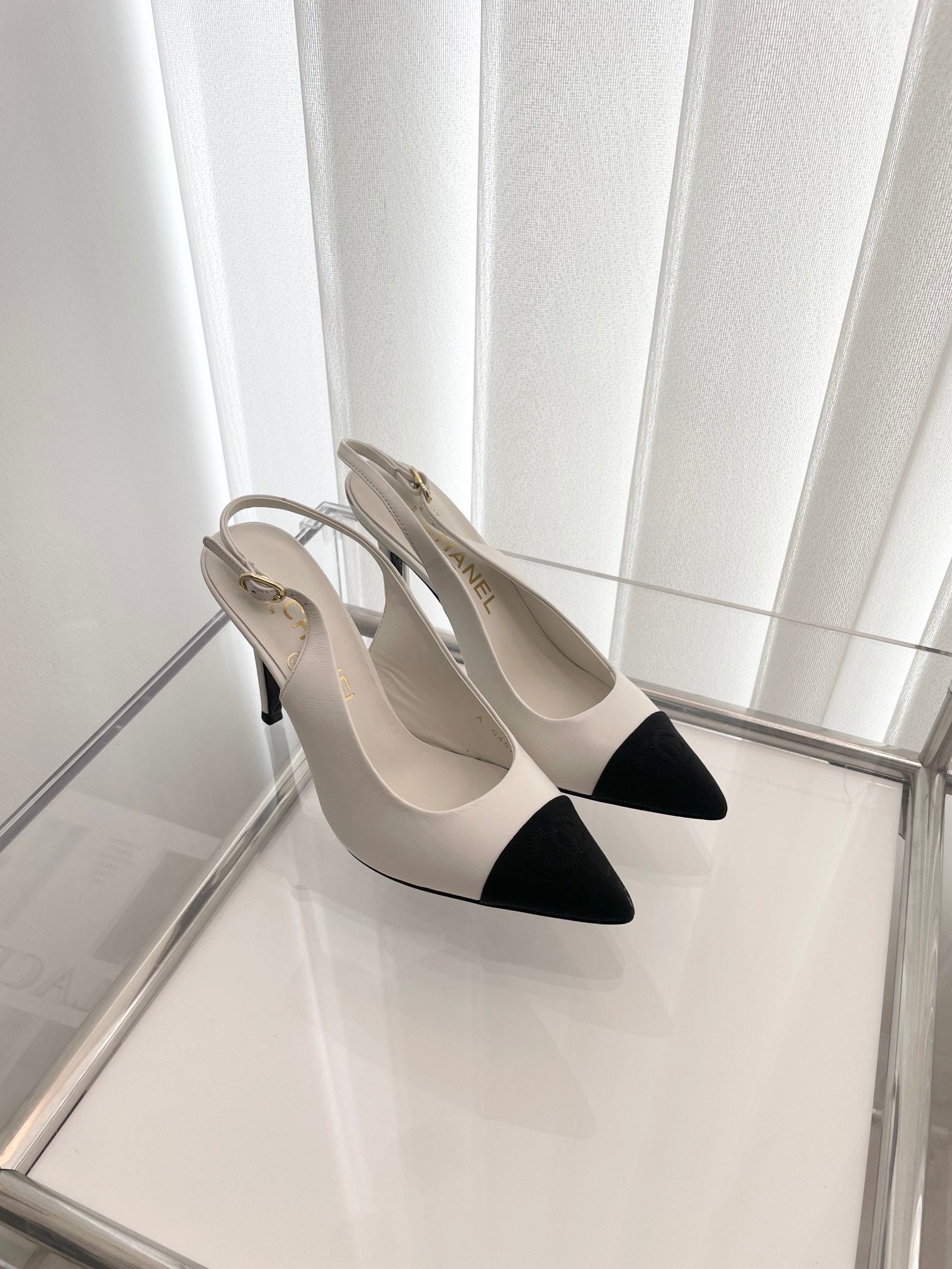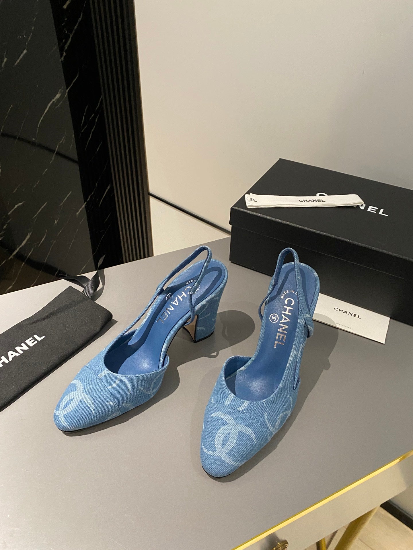 CC Slingback 15mm White Lambskin And Denim Fabric