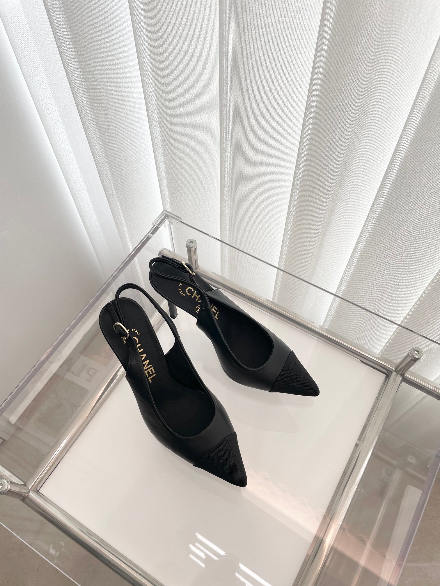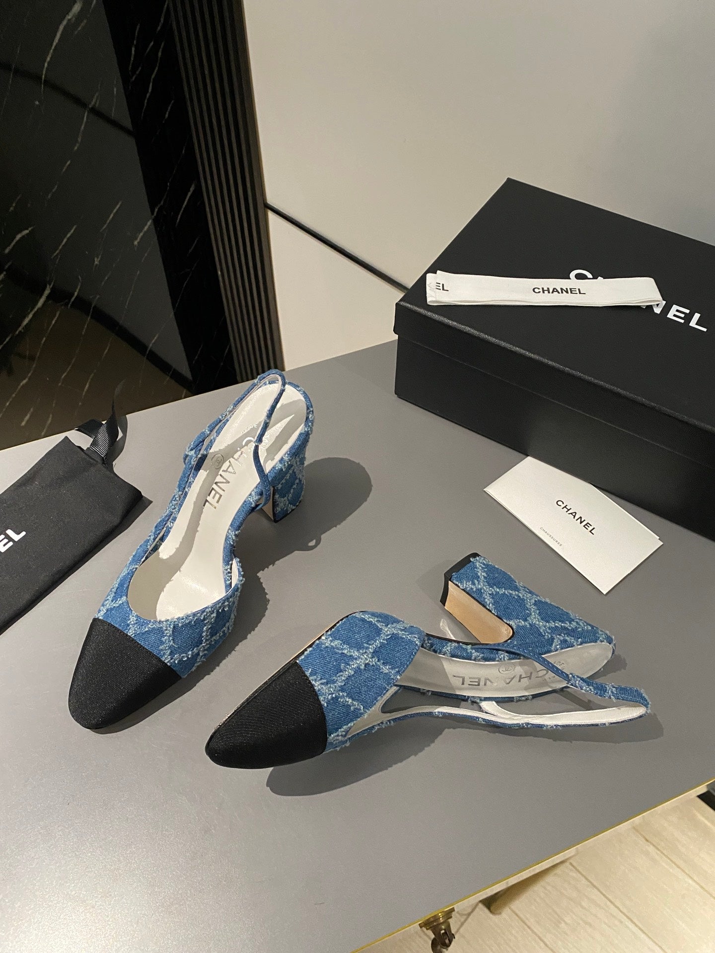 CC Slingback 15mm Black Lambskin And Denim Fabric