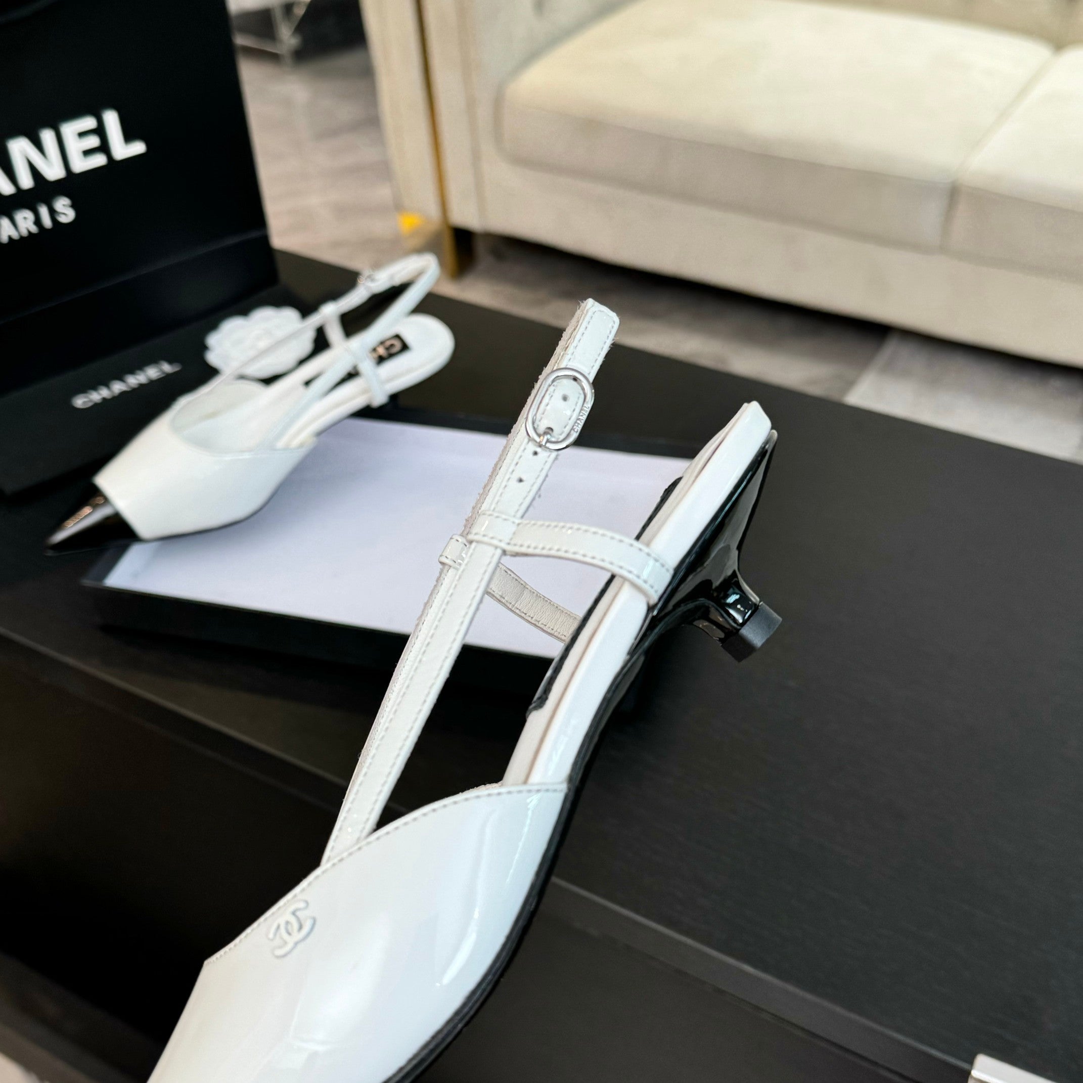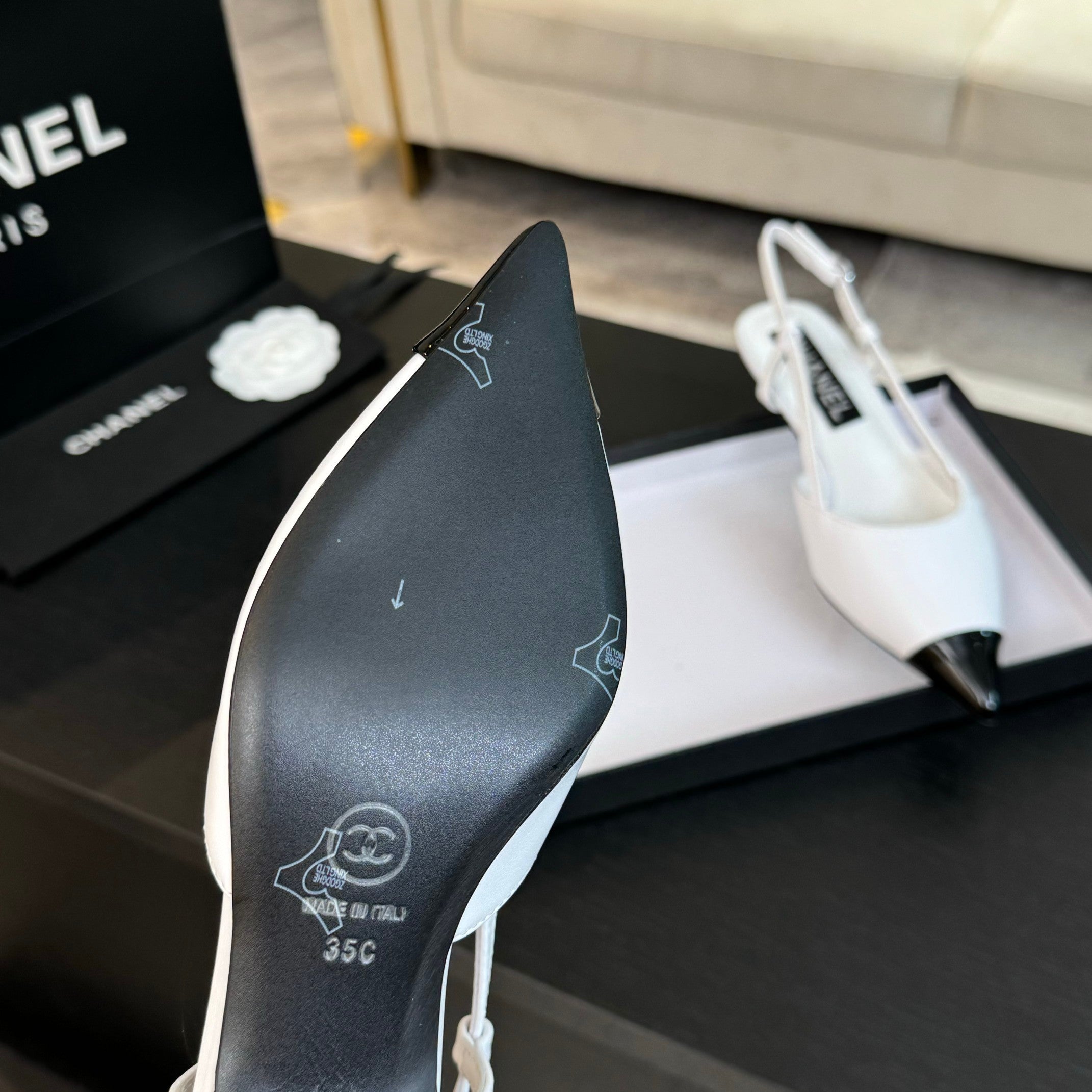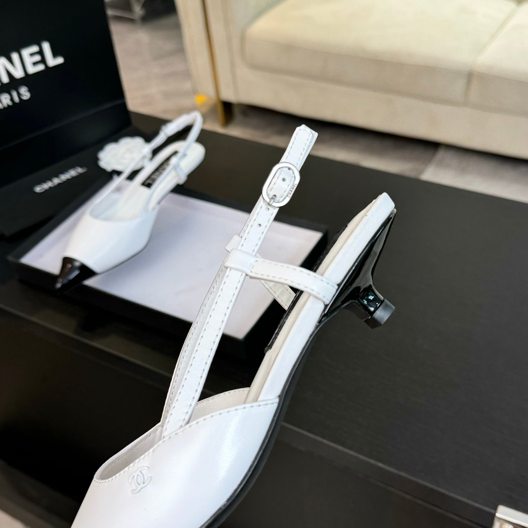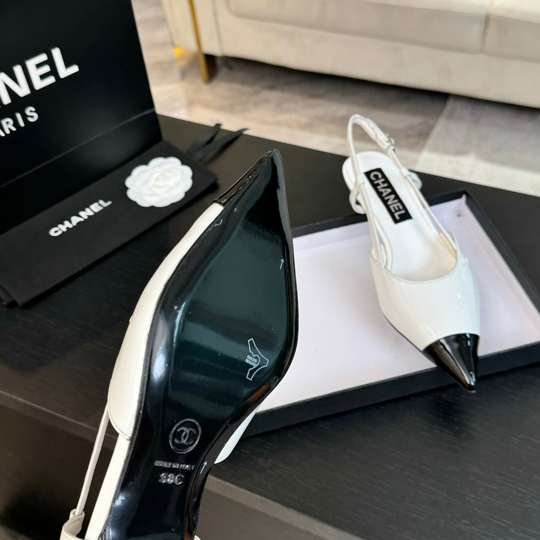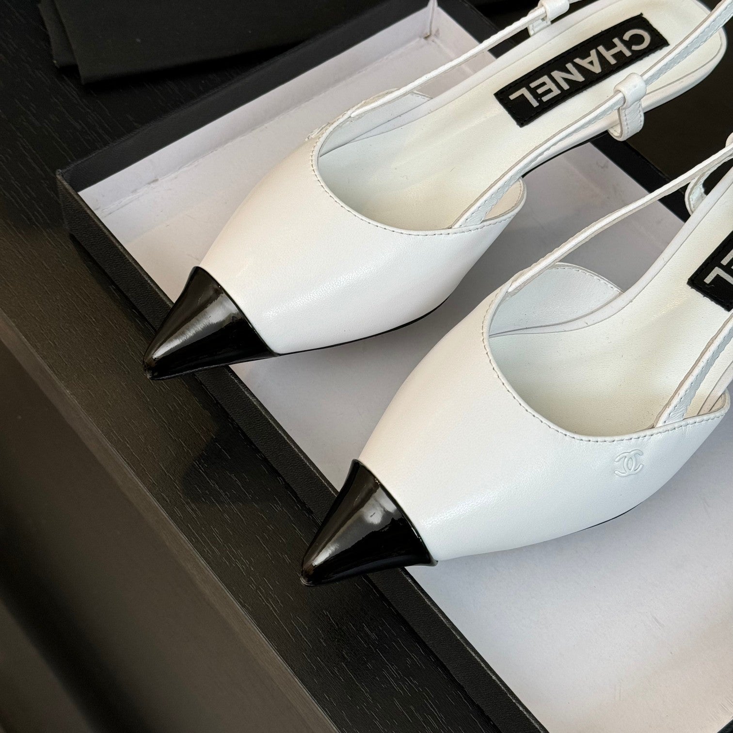 CC 24P SLINGBACKS 45MM WHITE BLACK LAMBSKIN