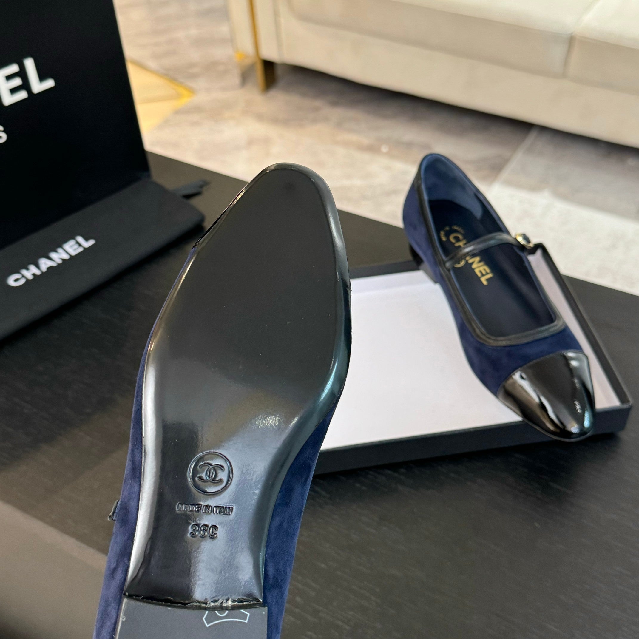 CC BALLET FLAT IN TAN BEIGE SUEDE AND BLACK CALFSKIN WITH FLOWER