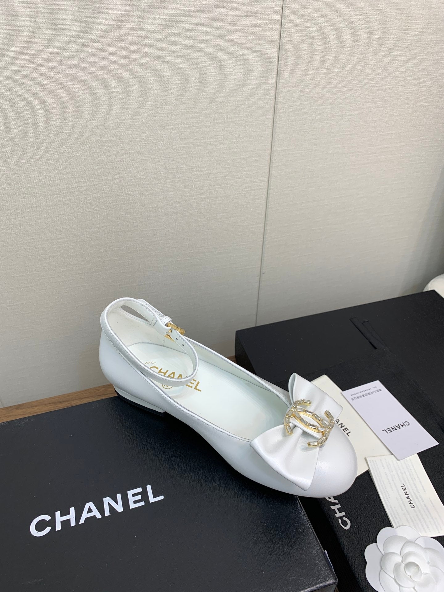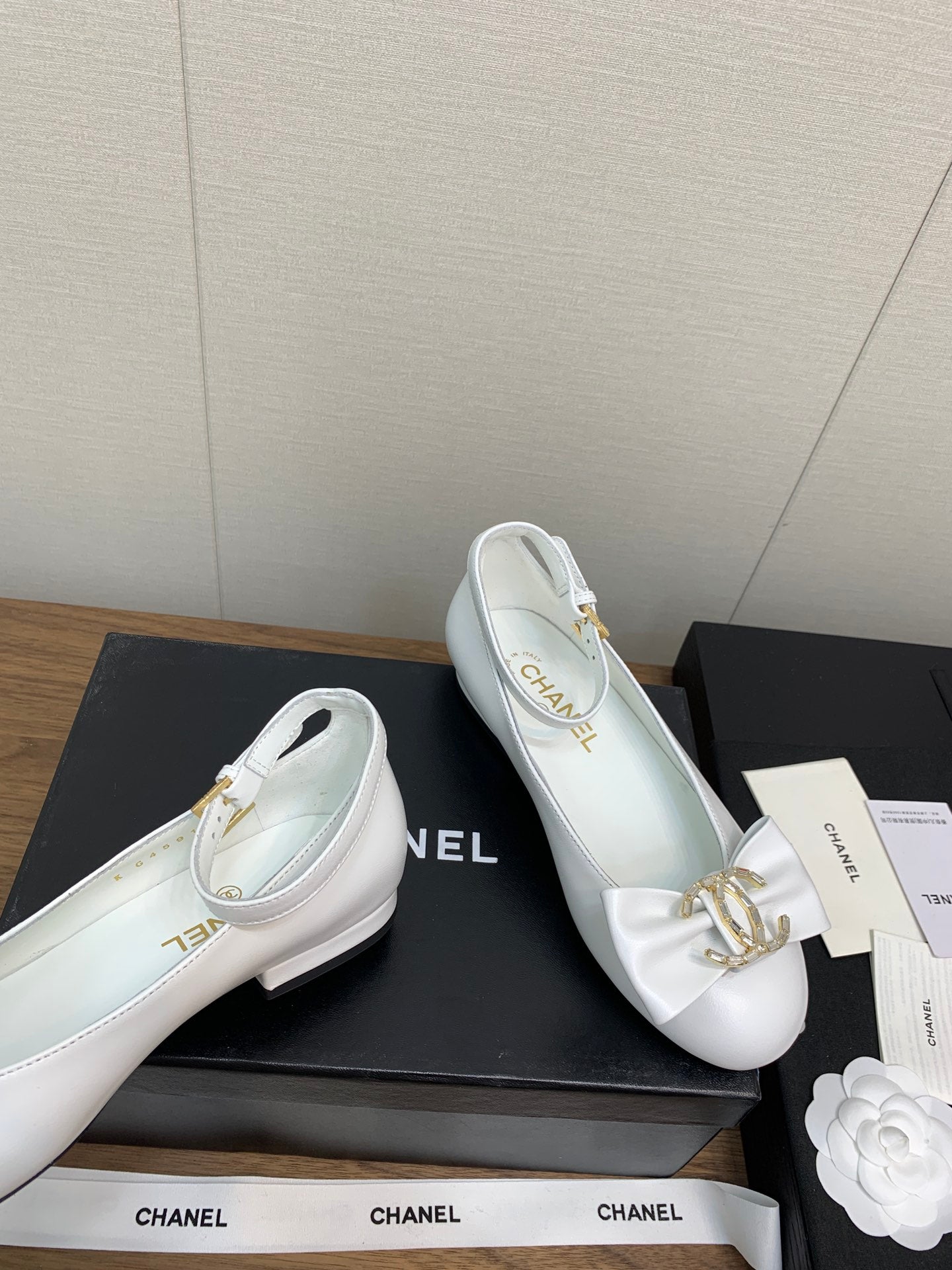 CC Mary Jane Beige Yellow Round Nose Lambskin
