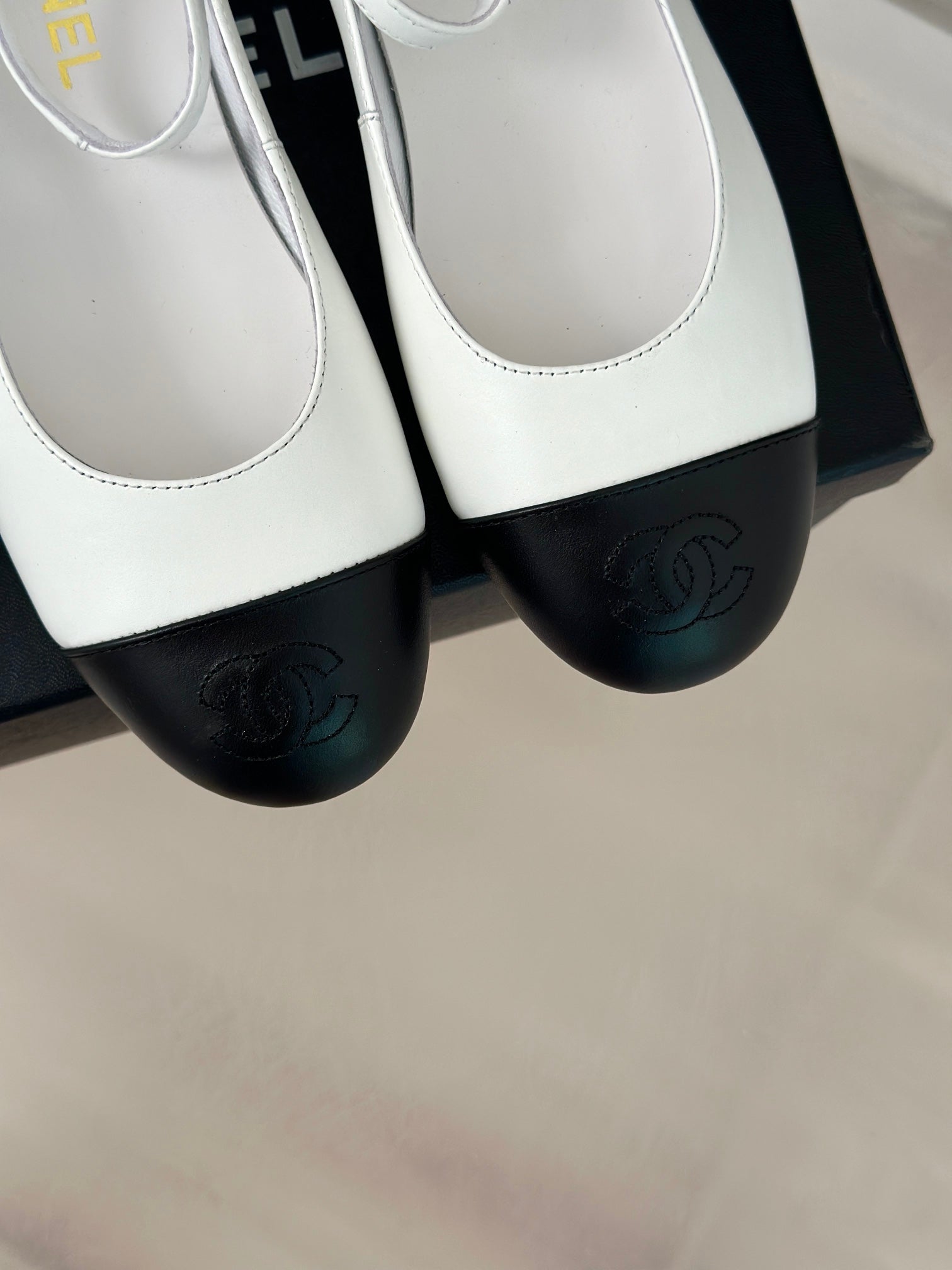CC BALLET FLAT IN WHITE SUEDE AND BLACK CALFSKIN WITH FLOWER