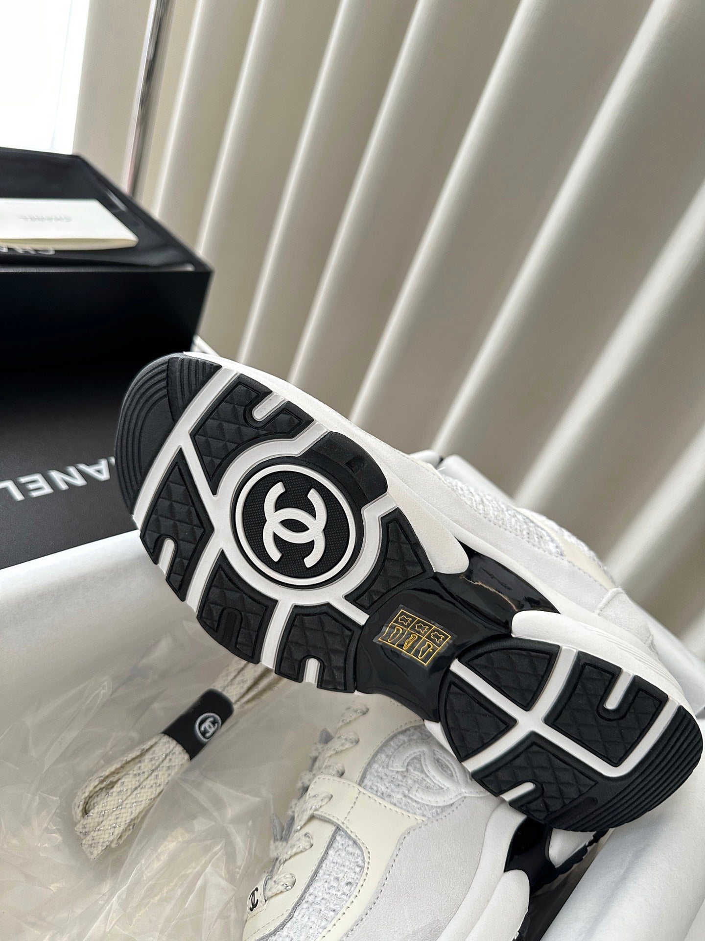 Chanel 25 Sneaker White Gold Mesh Leather 540309