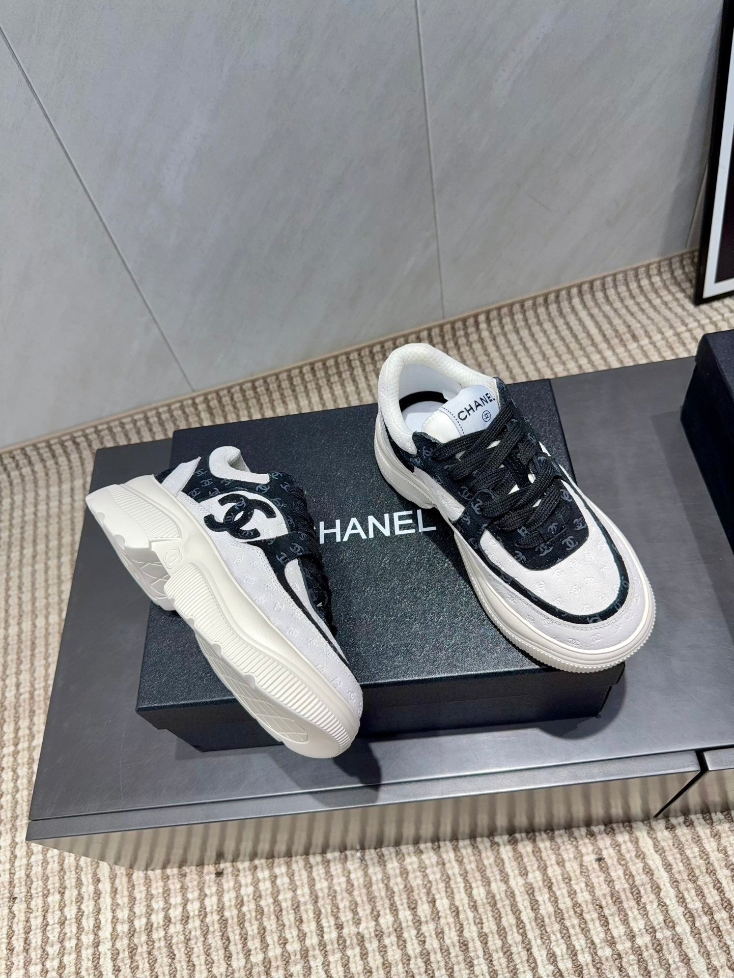 Chanel 25 Sneaker Ivory Black White Suede Fabric 540333