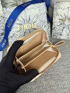 CD Logo Caro 11cm Compact Wallet Shiny Beige Calfskin