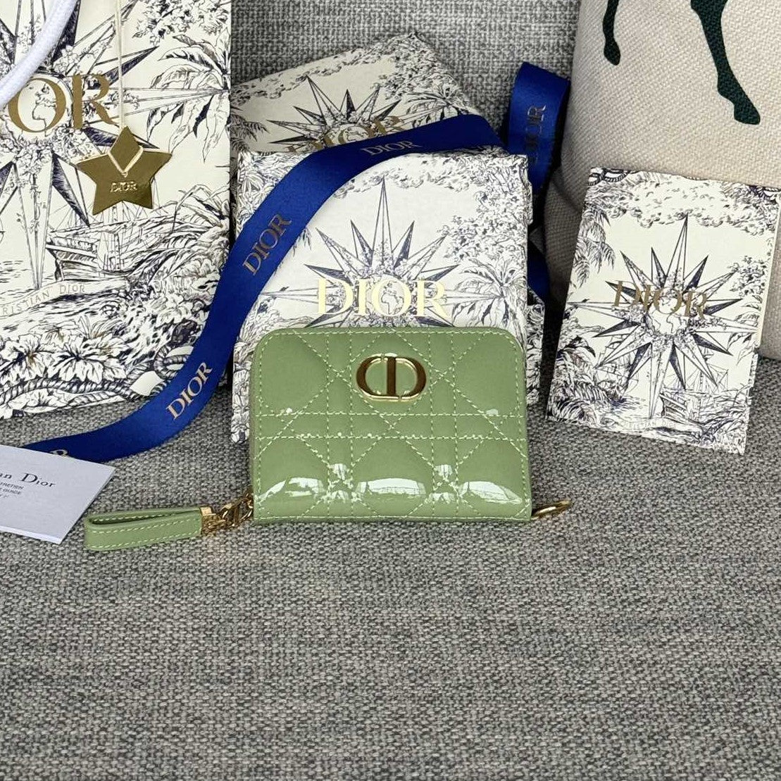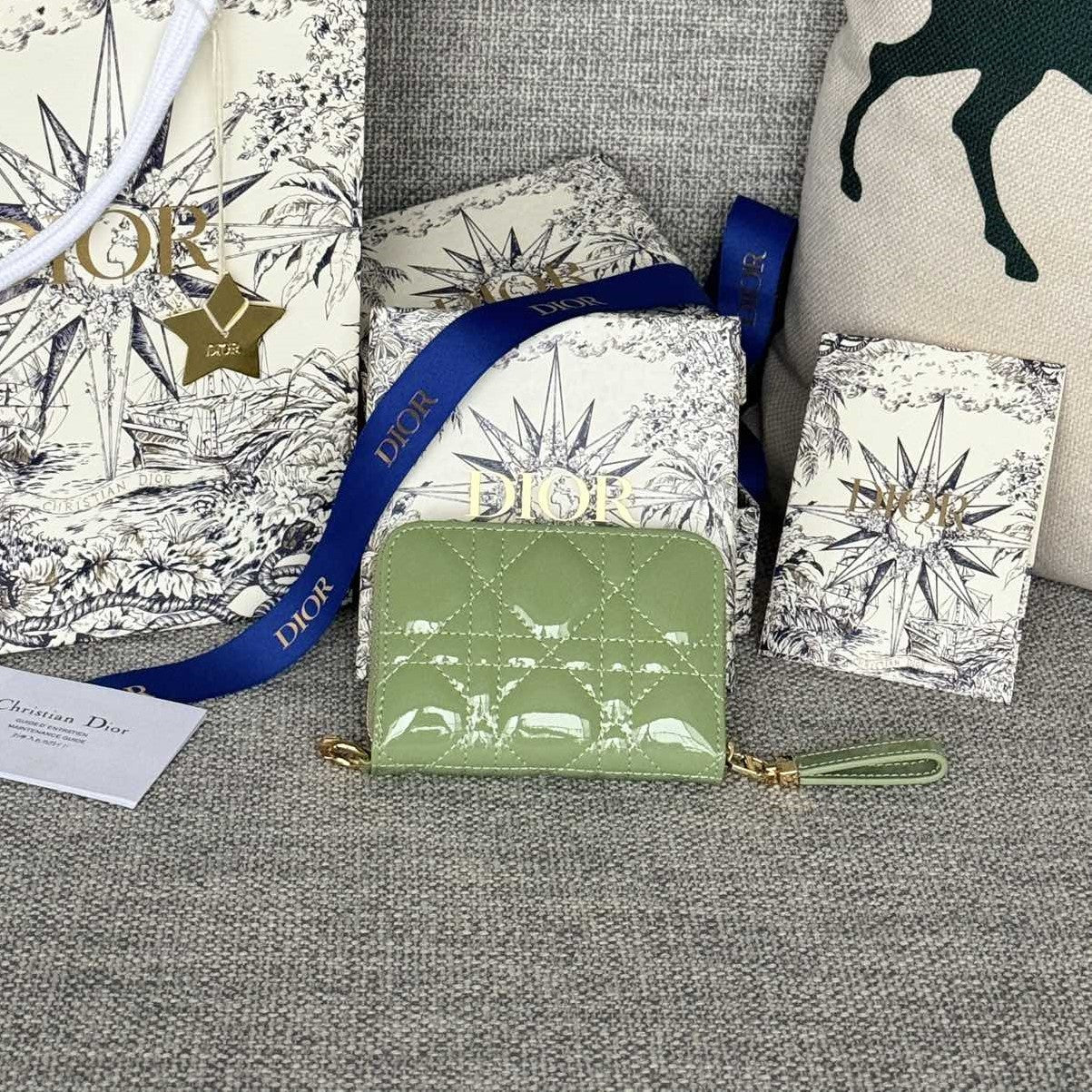 CD Logo Caro 11cm Compact Wallet Shiny Green Calfskin