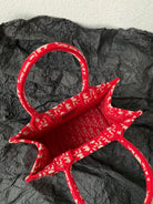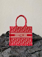 Small CD Book Tote 26.5cm Red Retro Style D Letter Embroidery