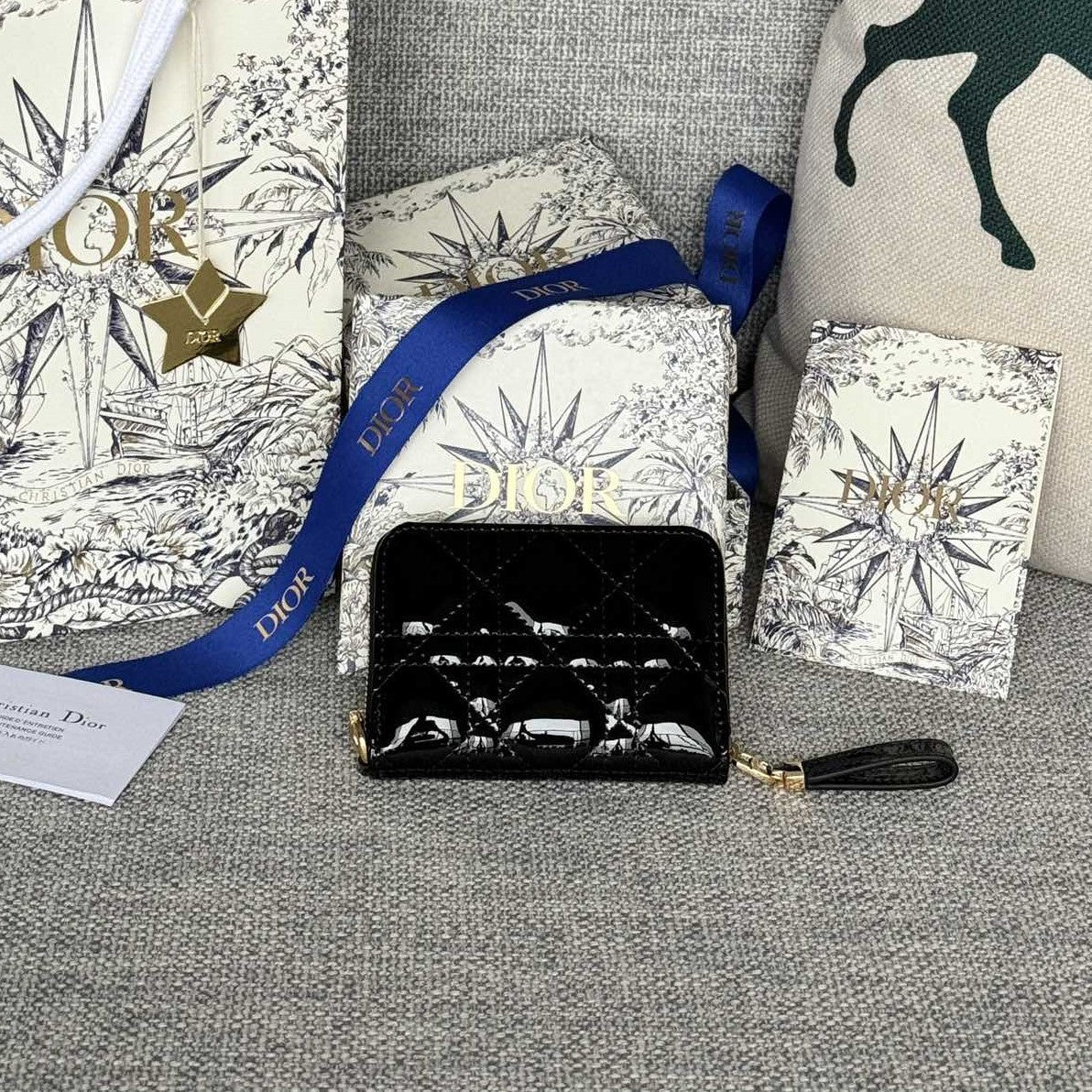 CD Caro 11cm Compact Wallet Shiny Black Calfskin
