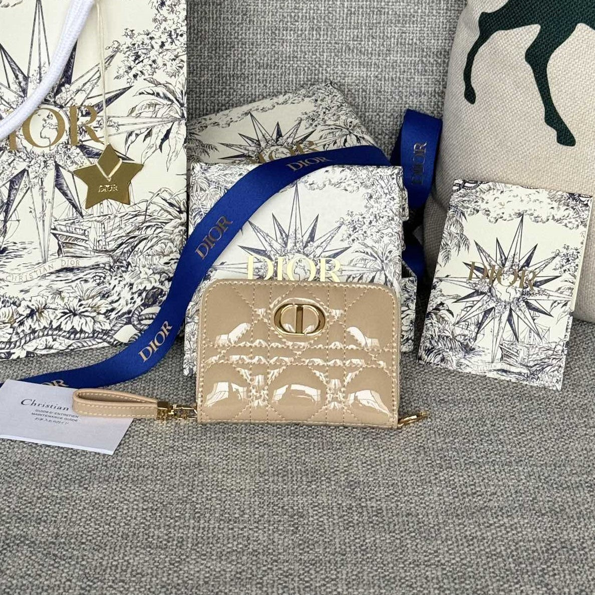 CD Caro 11cm Compact Wallet Shiny Beige Calfskin