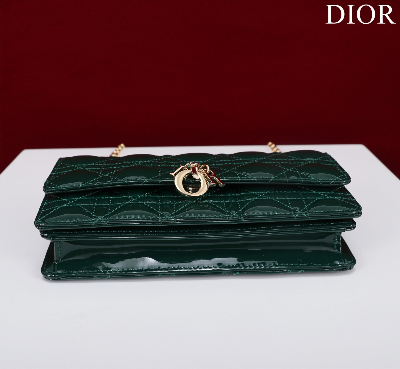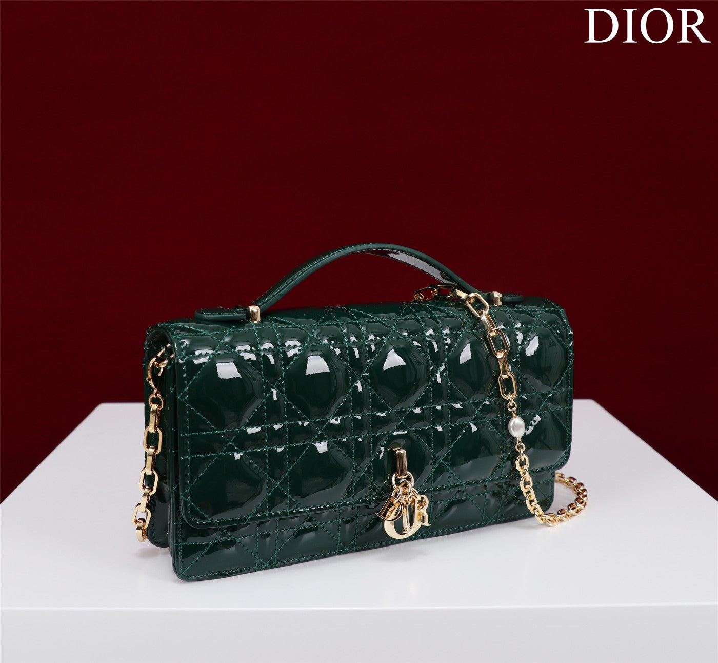 my cd mini 21 dark green patent calfskin