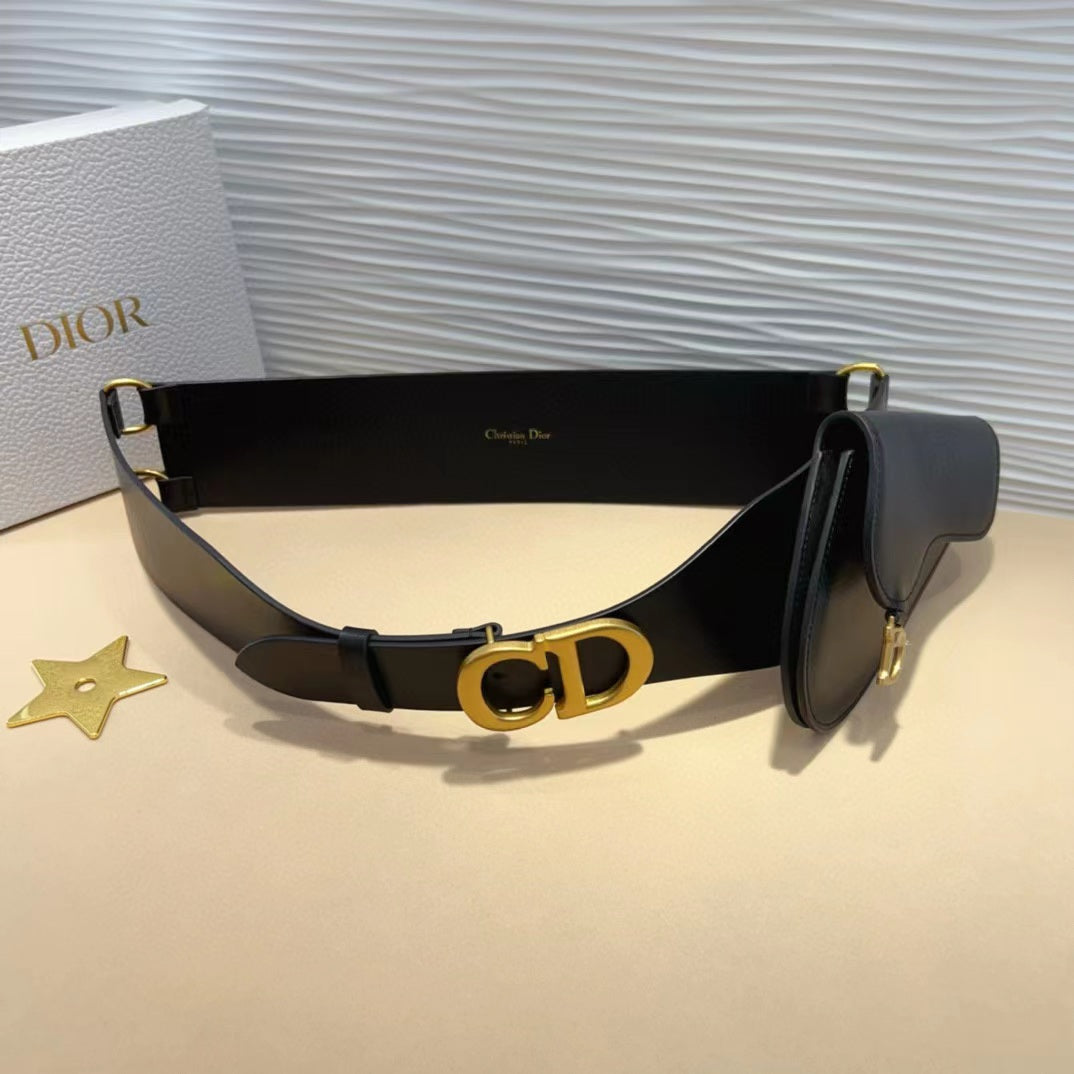 cd d-waist 10cm double buckle black leather
