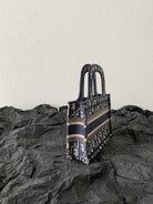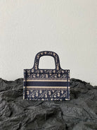 cd mini book tote 23cm blue beige embroidery canvas