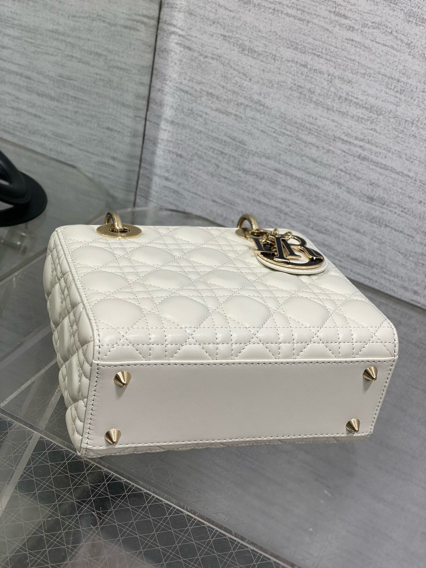 Lady Dior 20cm White Black Gold Chain Lambskin