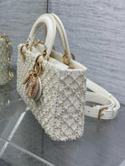 MEDIUM LADY D-JOY 26 WHITE LATTE CALFSKIN PEARL