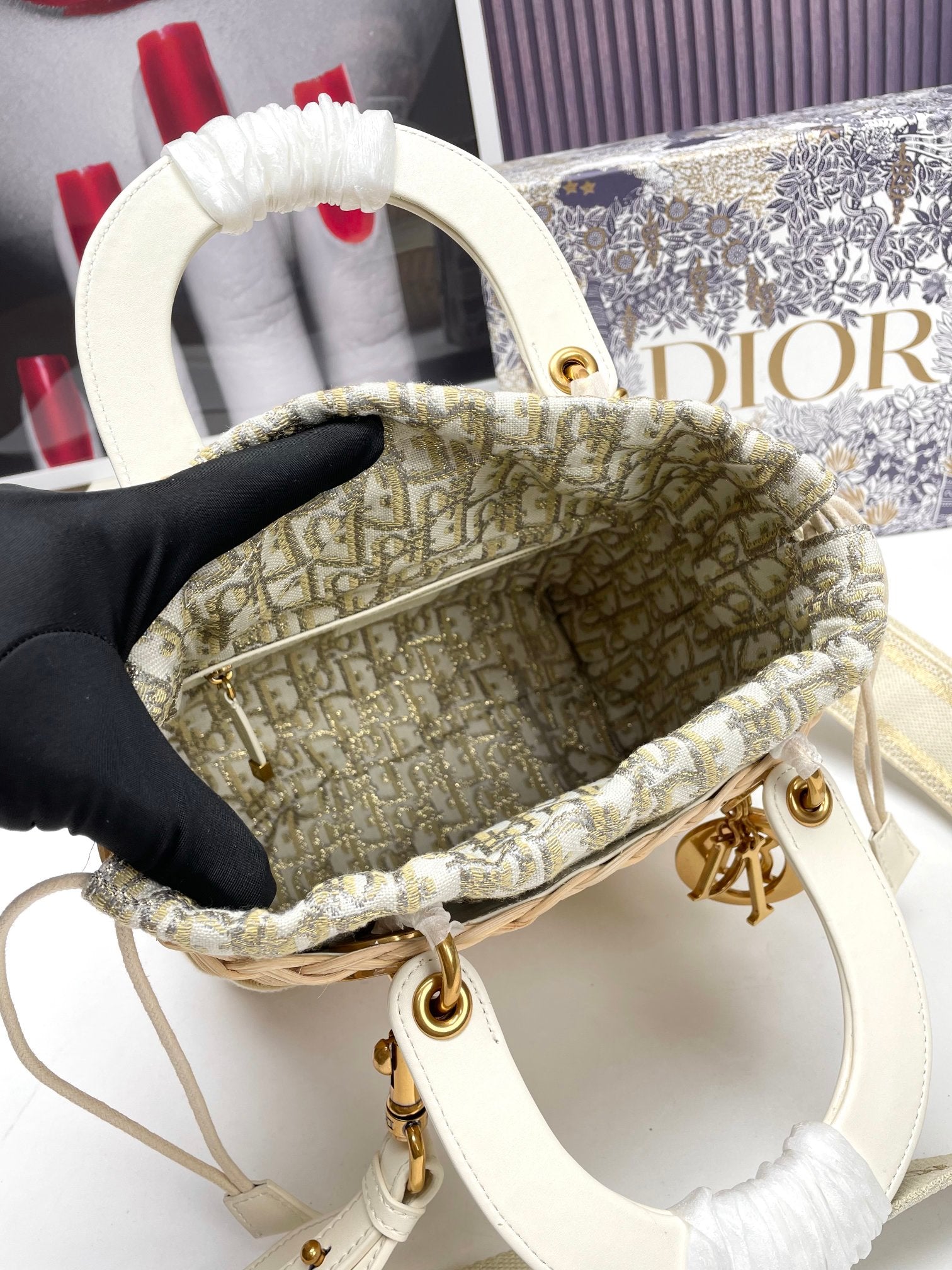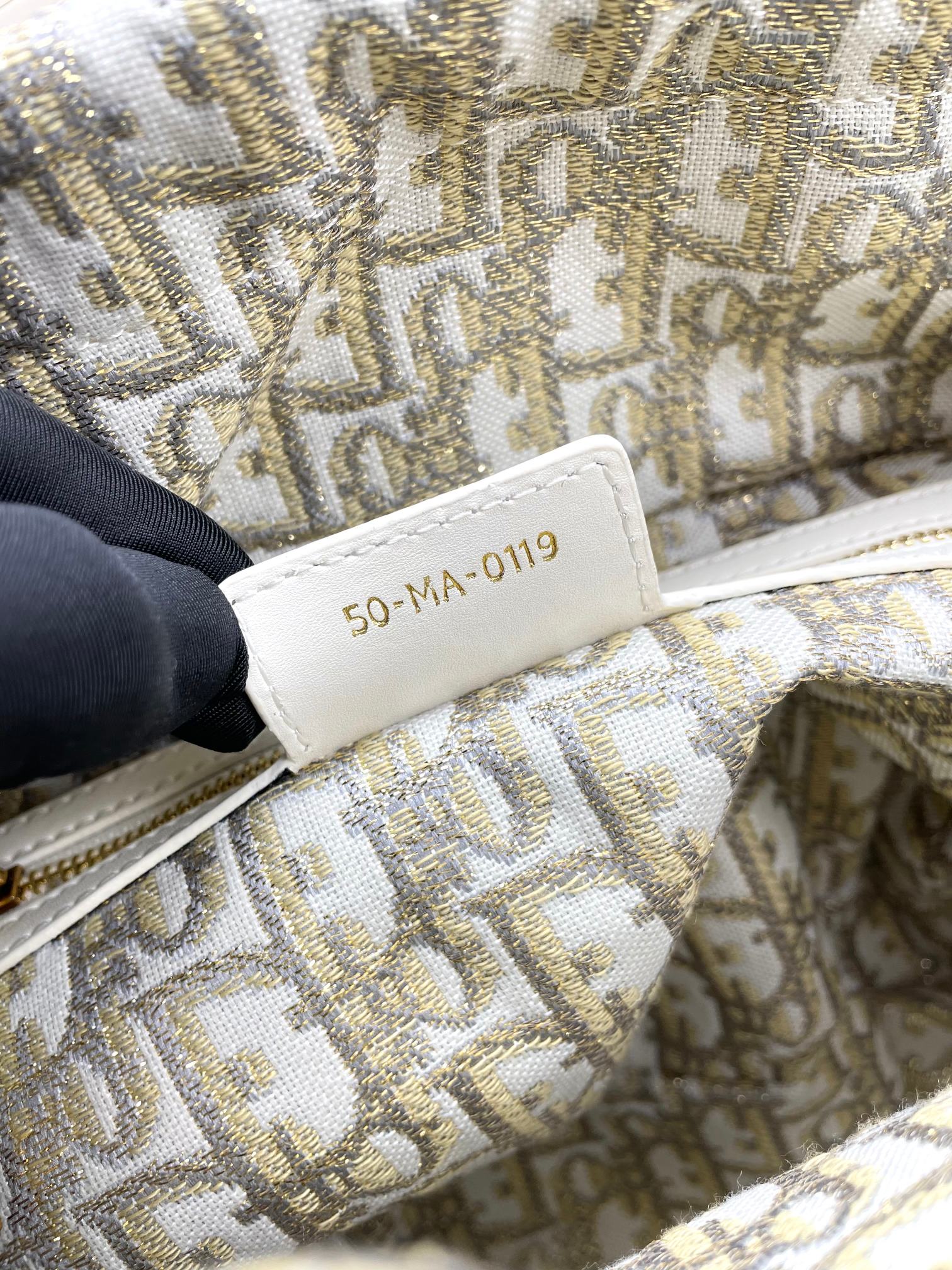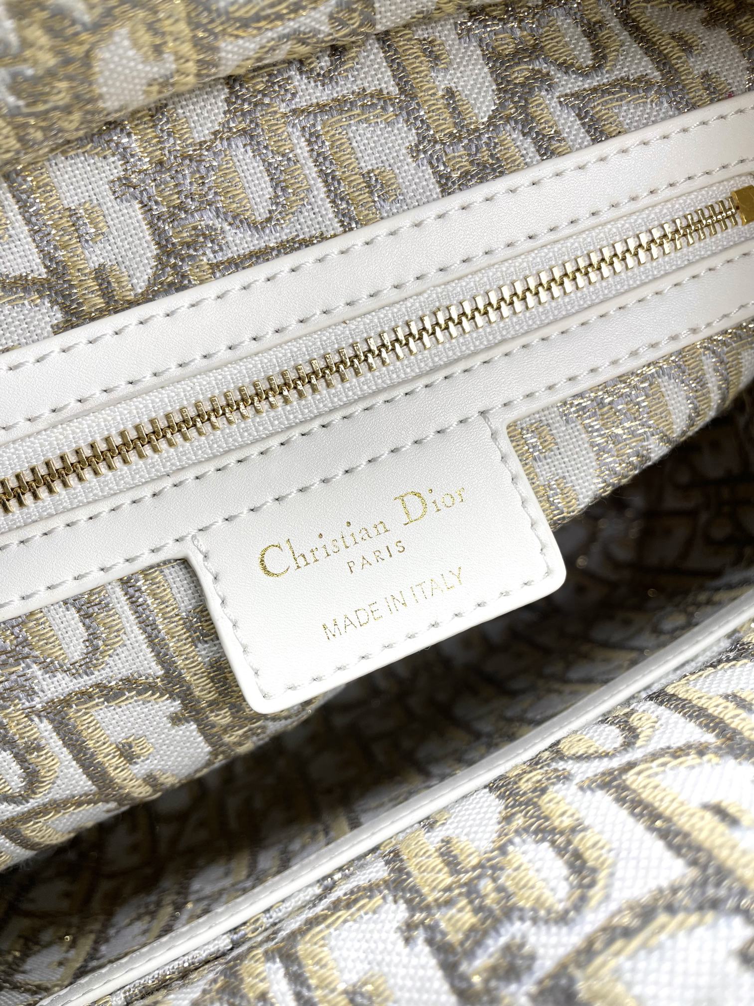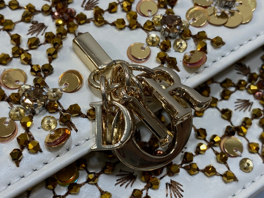 Dior 2025 Microbead Sequin Embroidery Bag 21cm White Gold Calfskin 270503
