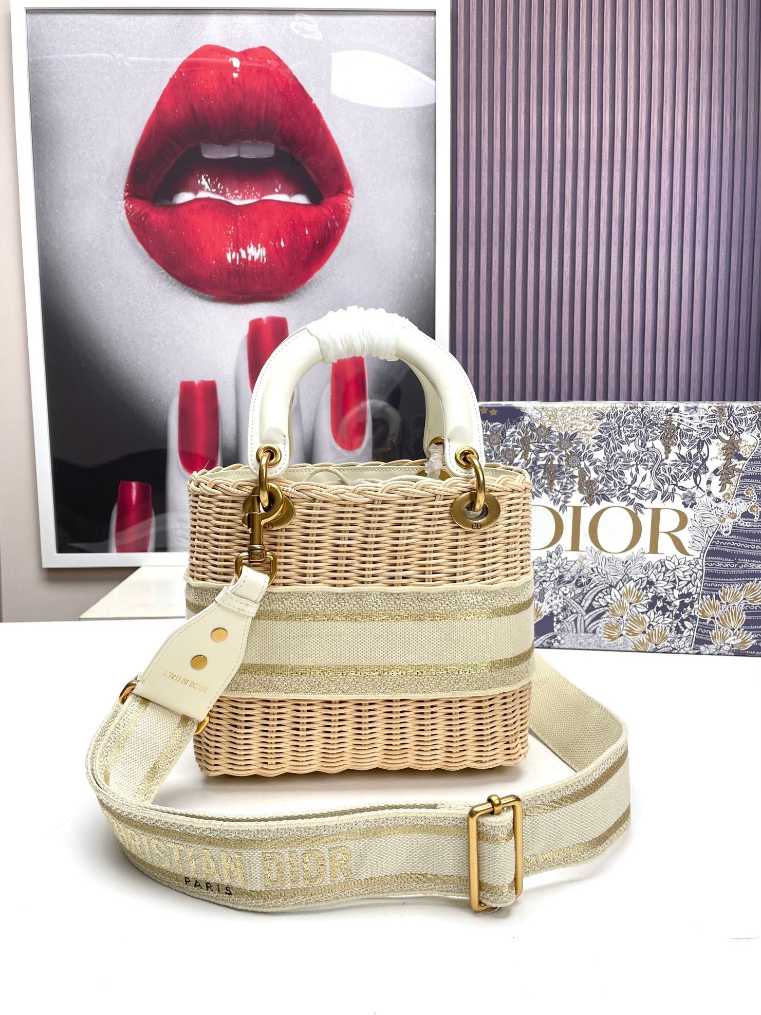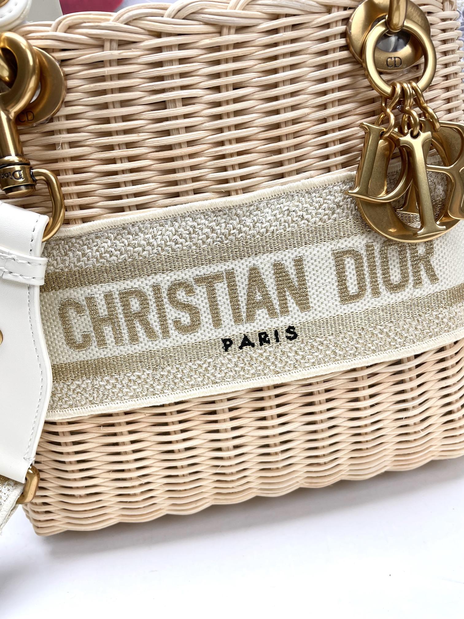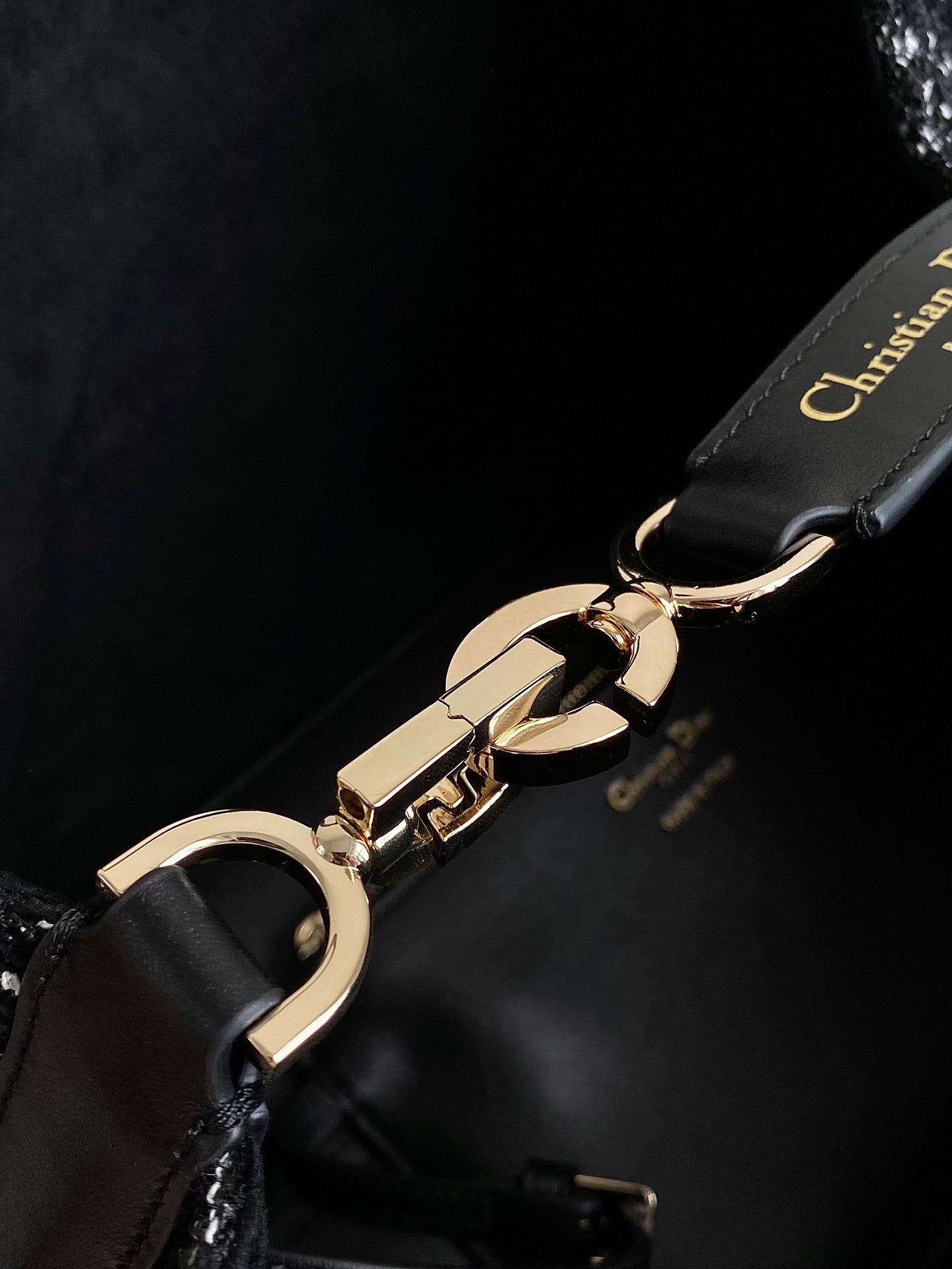 Dior 2025 Microbead Sequin Embroidery Bag 21cm White Gold Calfskin 270503