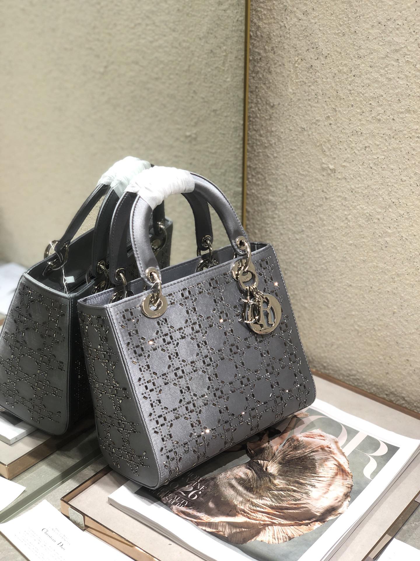 MEDIUM D-JOY BAG 26 IN GREY CALFSKIN