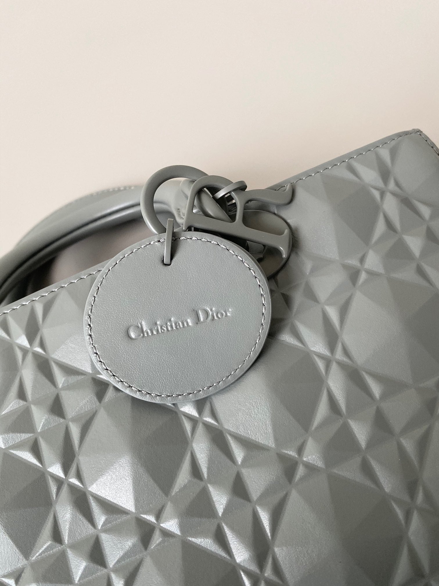 LADY 24 HANDBAG EMBOSSED DIAMOND IN GREY CALFSKIN