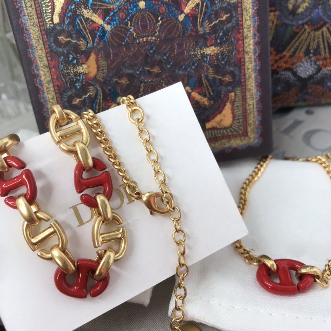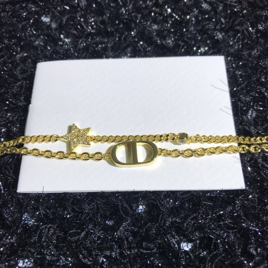 CD LOGO MOP GOLD DOUBLE CHAIN NECKLACE
