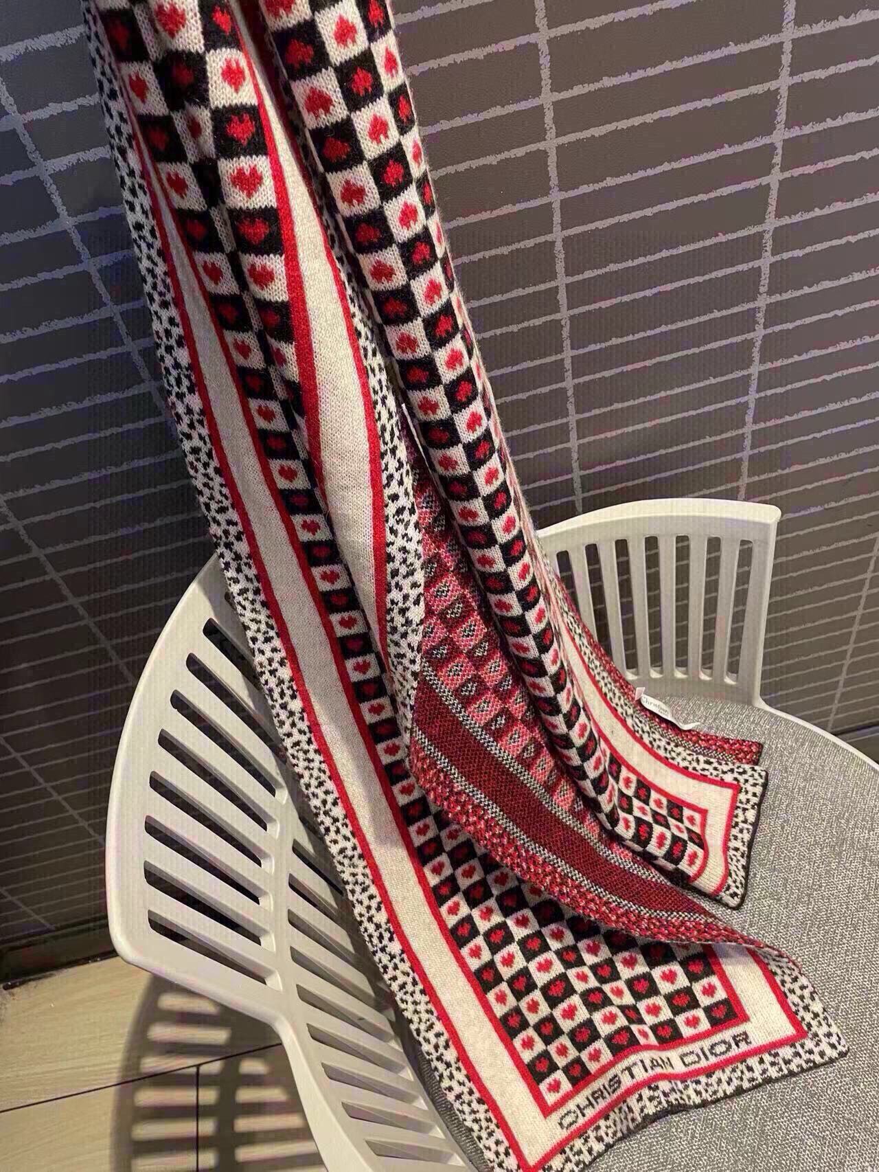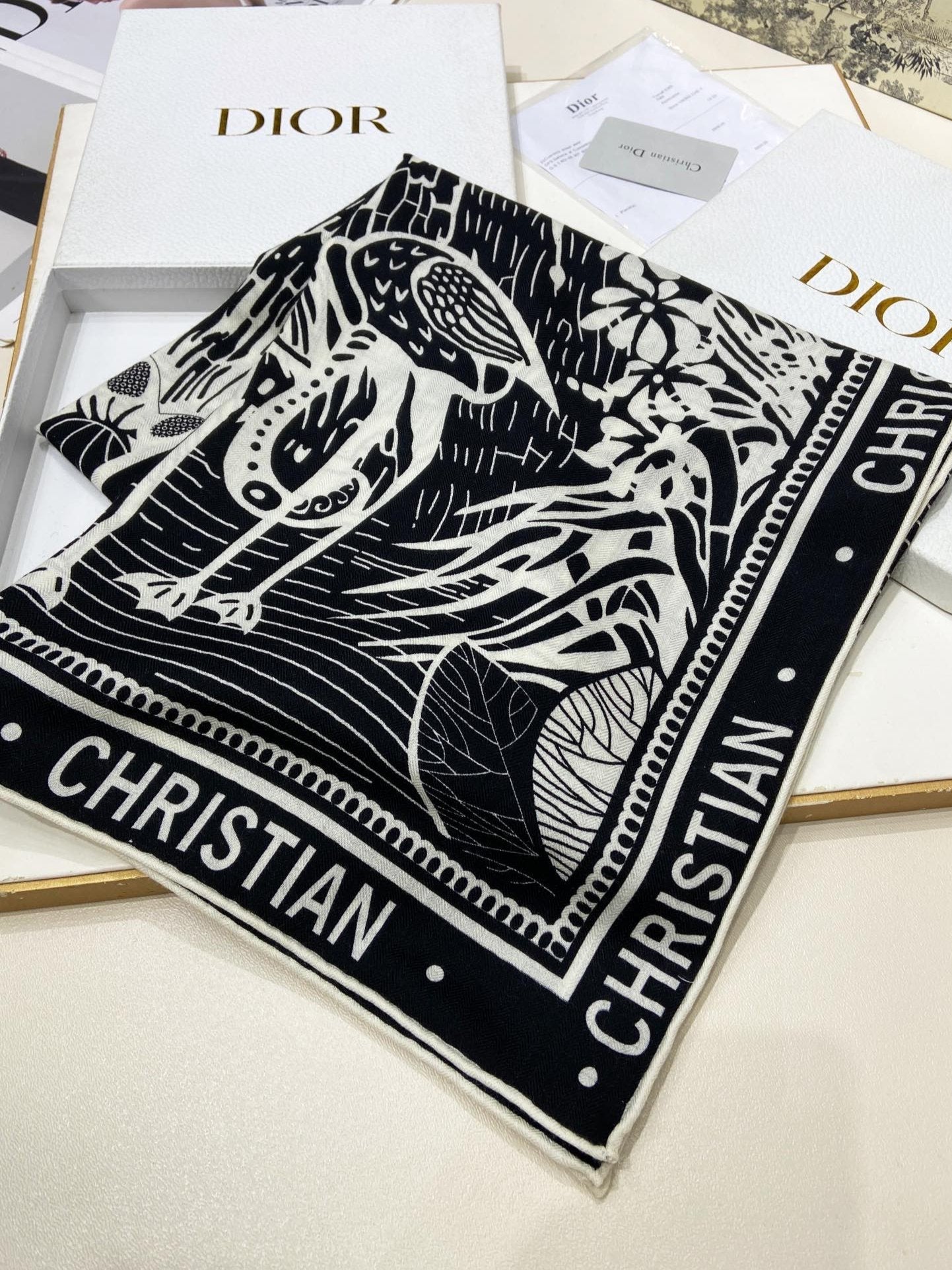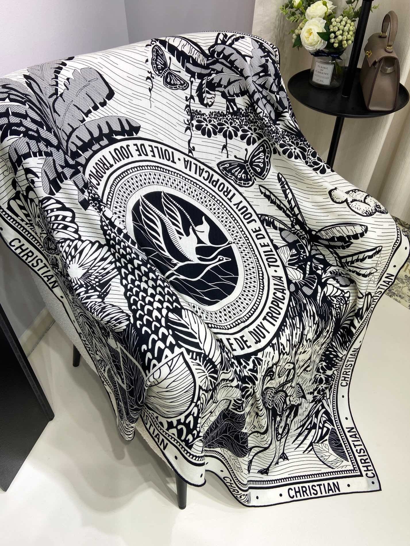 MISS DIOR ALLOVER SHAWL 140 CM IN BLACK MIX WHITE SILK CASHMERE 411629