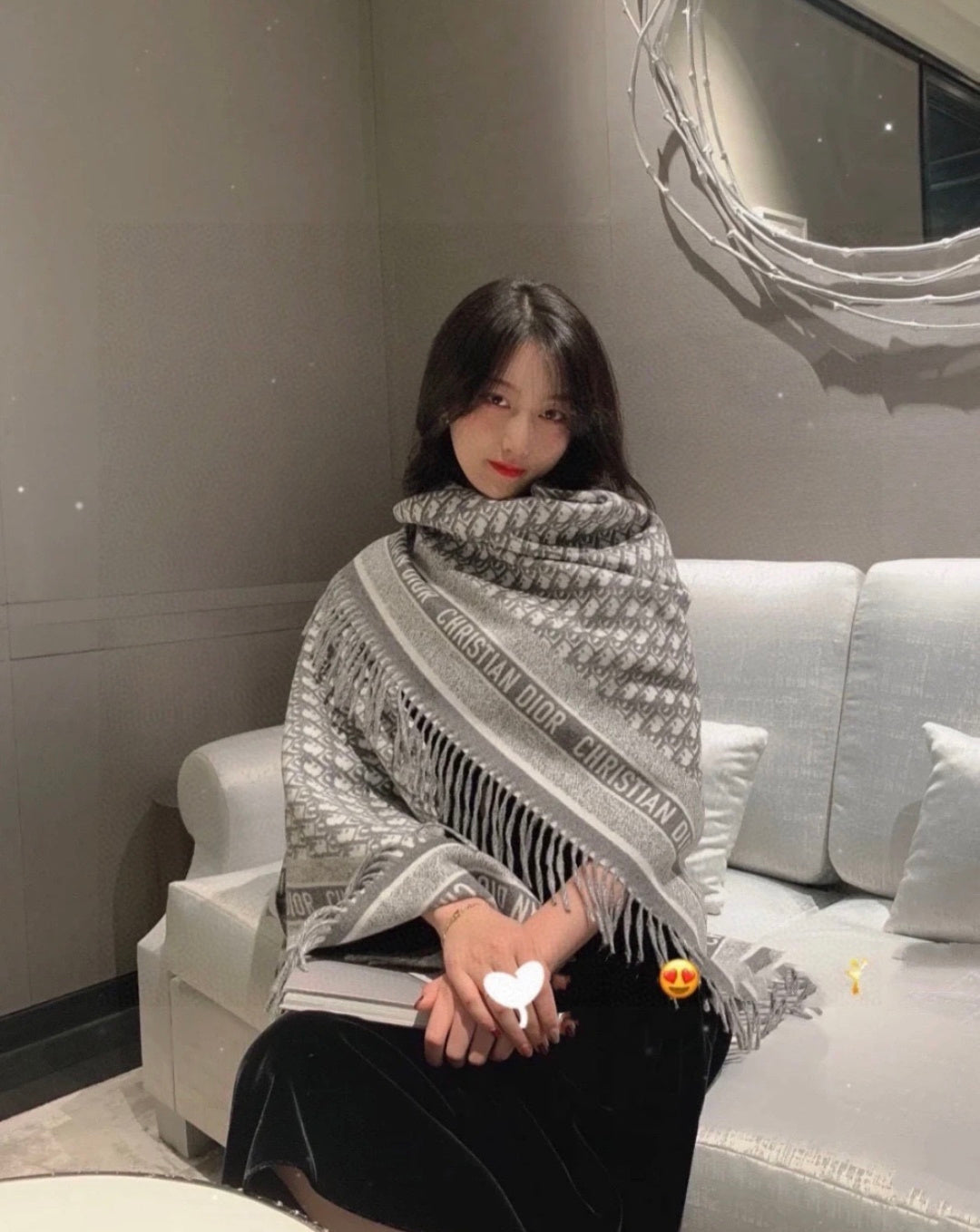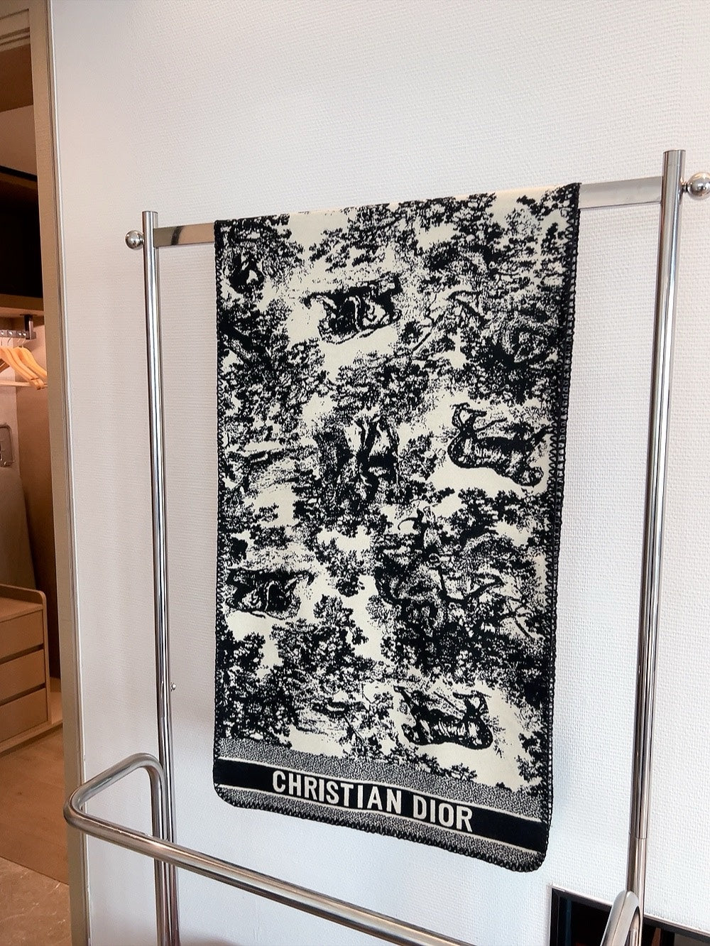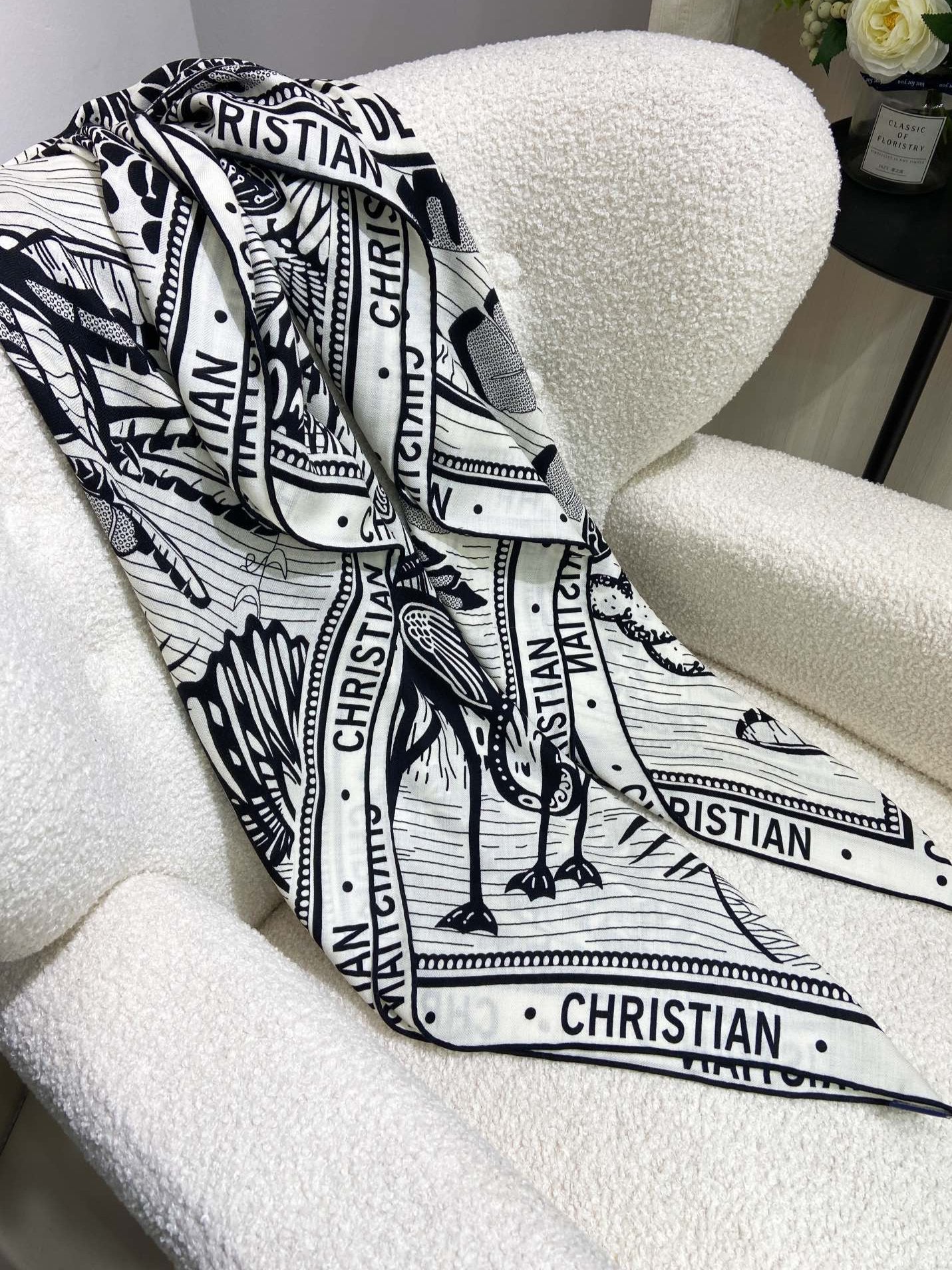 MISS DIOR ALLOVER SHAWL 140 CM IN BLACK MIX WHITE SILK CASHMERE 411629