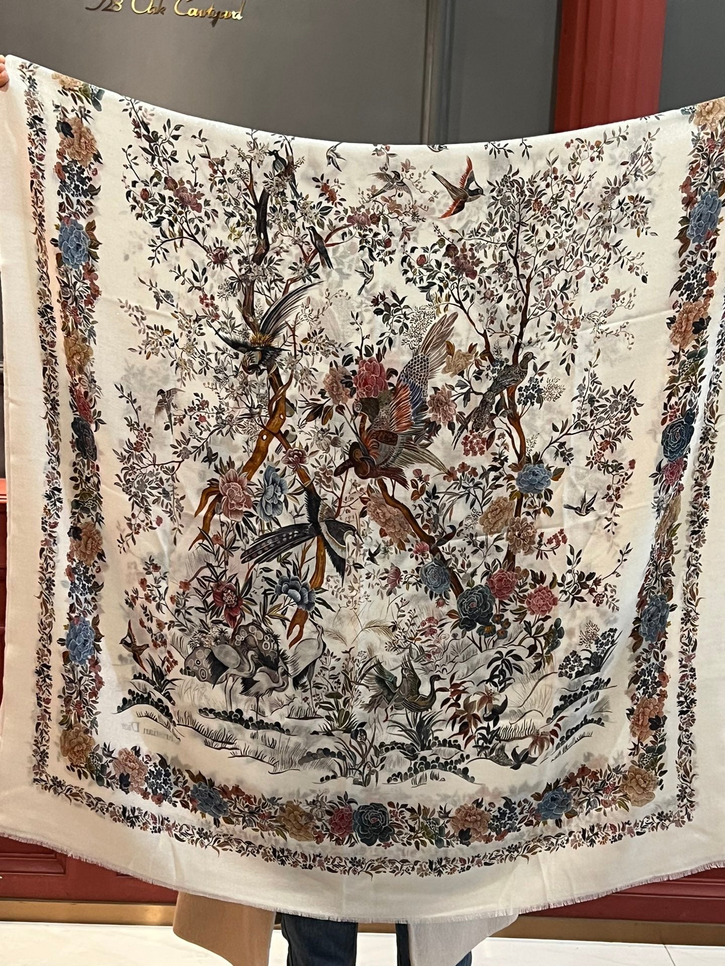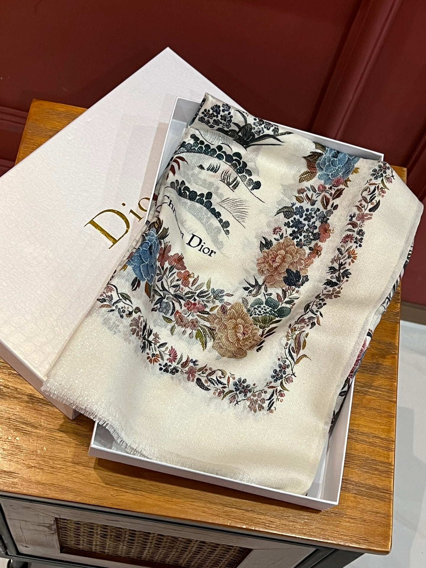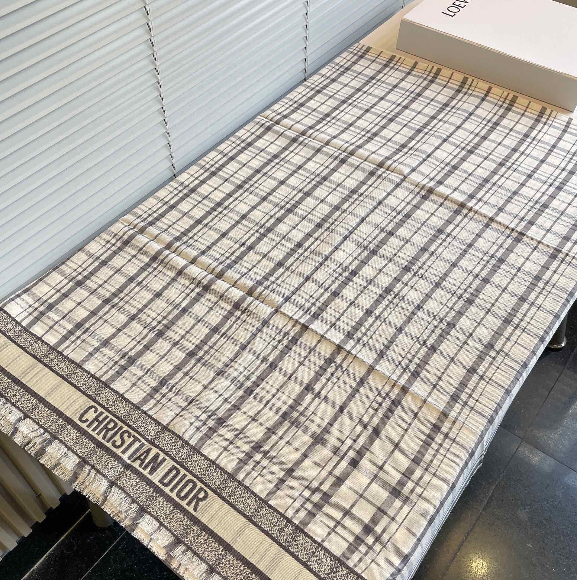 CD Embroidery Scarf 200CM Soft Beige Wool Cashmere 293451