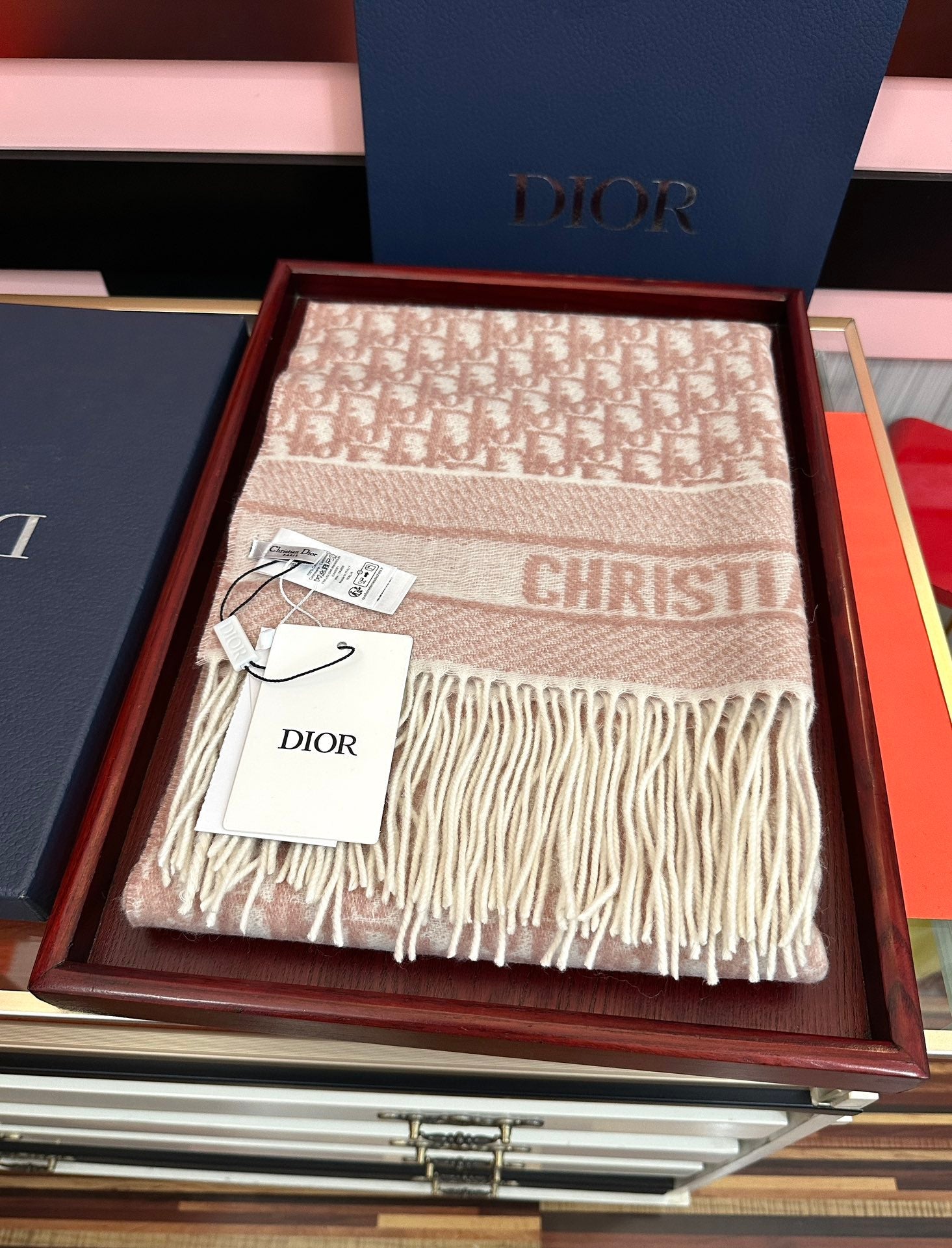 CD Oblique Print Scarf 200CM Light Pink Wool 292982