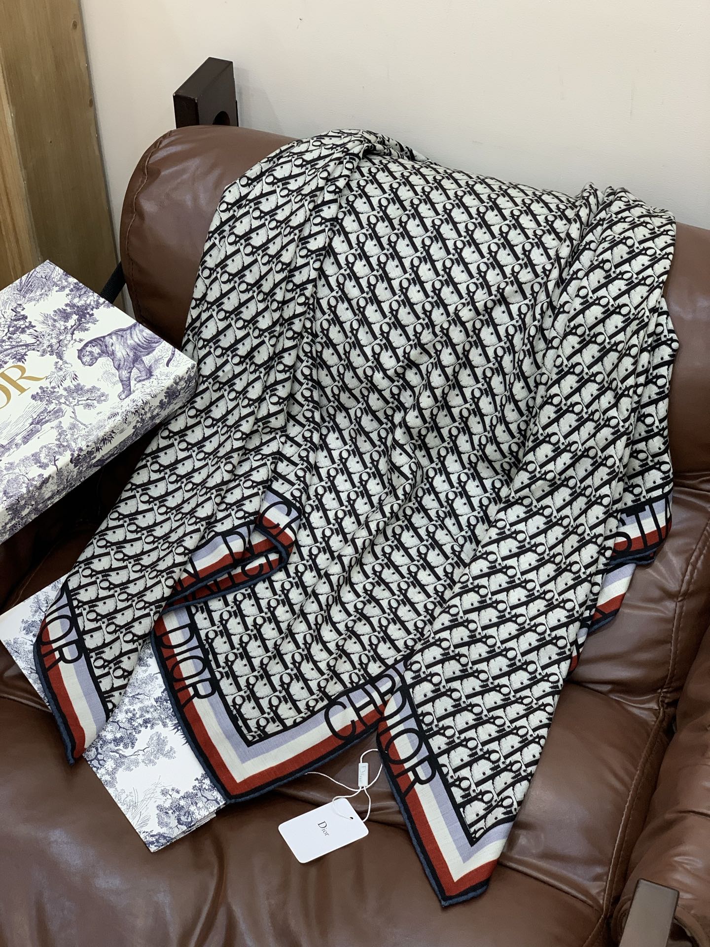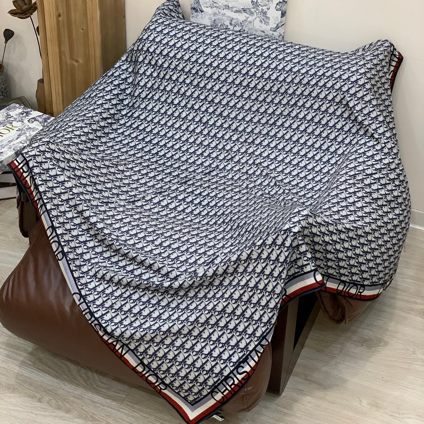CD Monogram Scarf 140CM Dark Blue Cream Cashmere 293188
