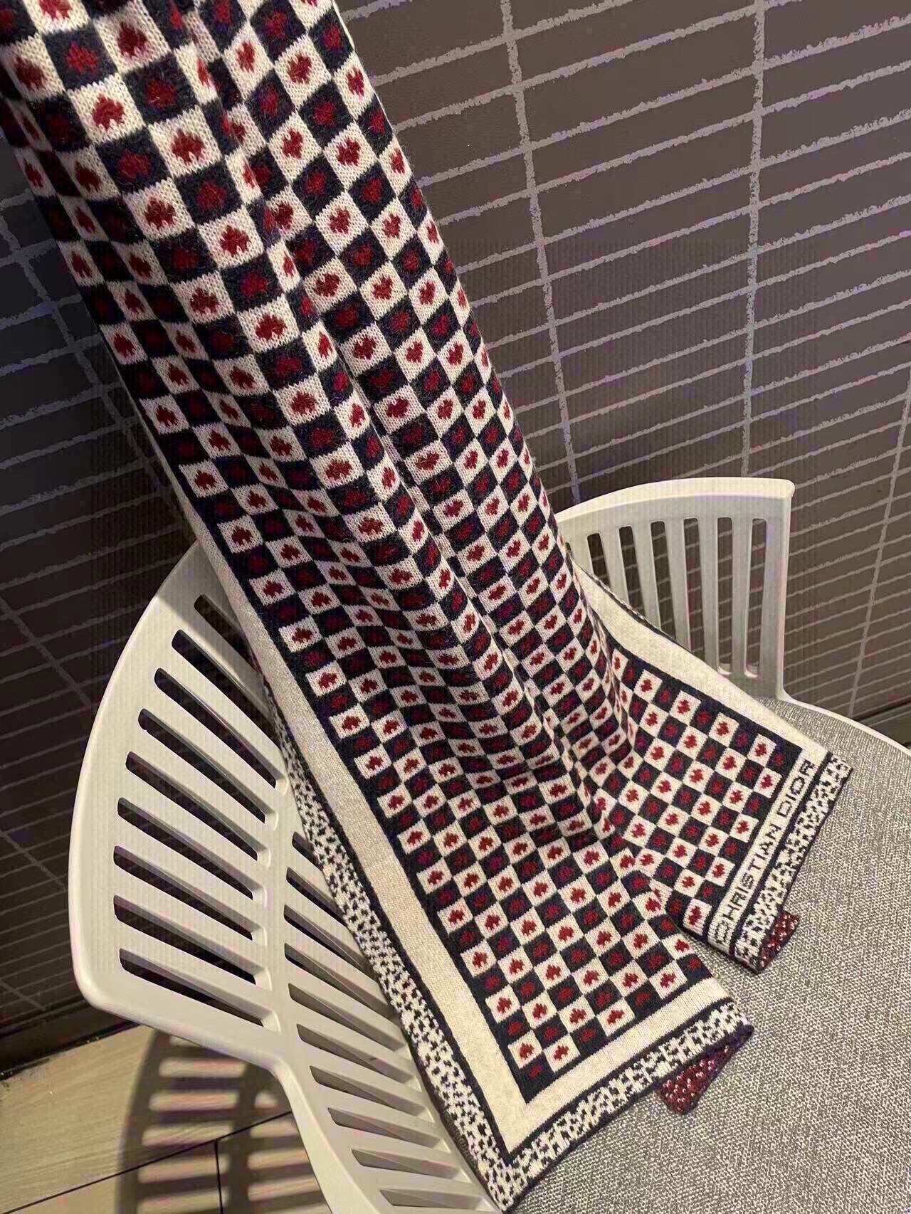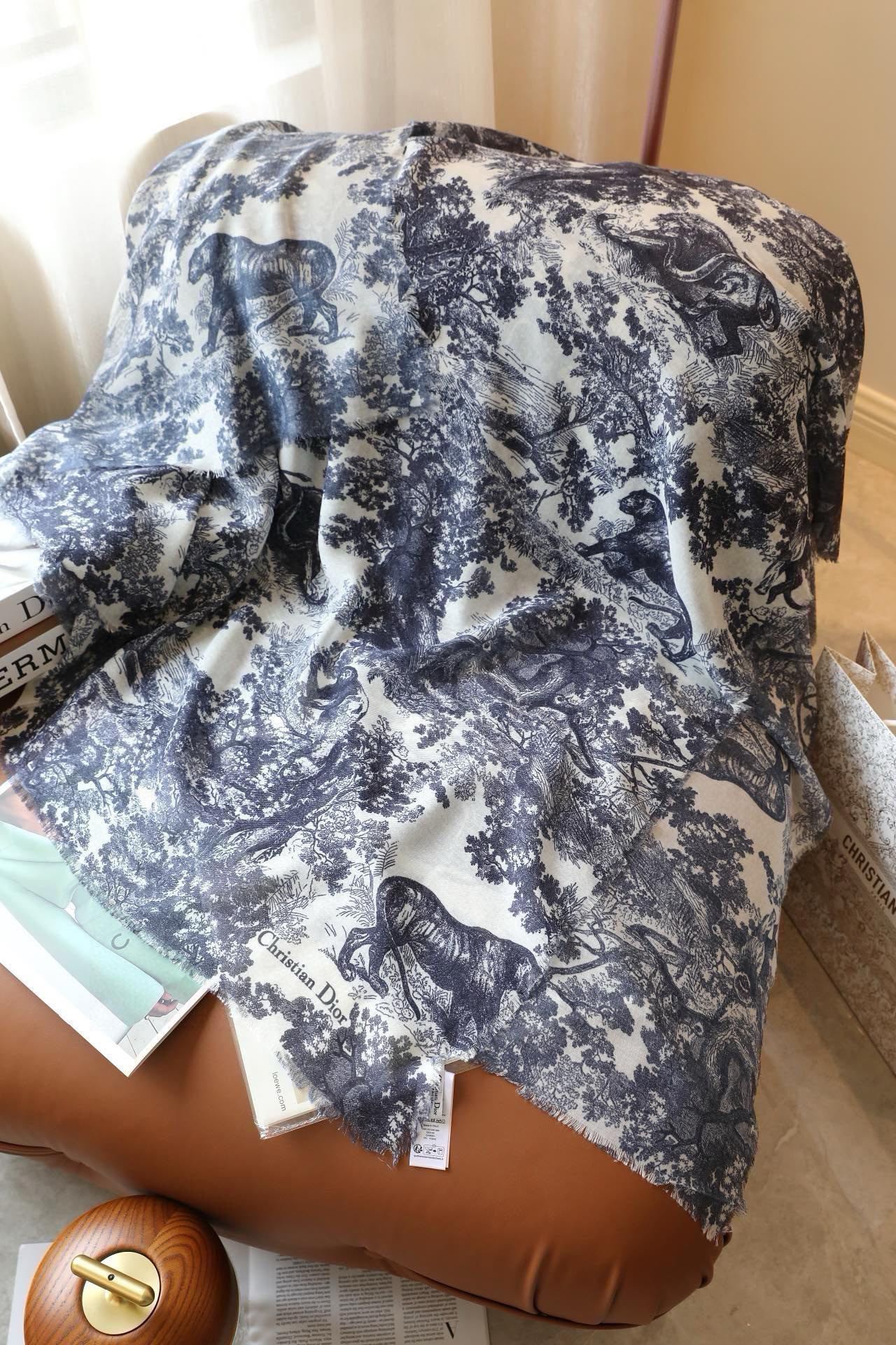 CD Monogram Scarf 140CM Dark Blue White Cashmere 293187