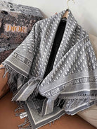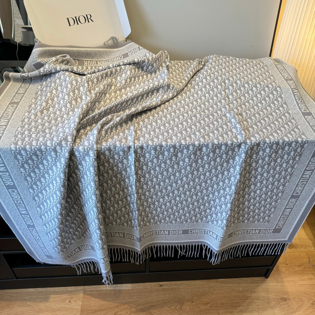 CD Jacquard Logo Scarf 140CM Gray Wool Cashmere 293335