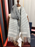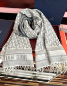 CD Oblique Print Scarf 200CM Gray White Wool 292981