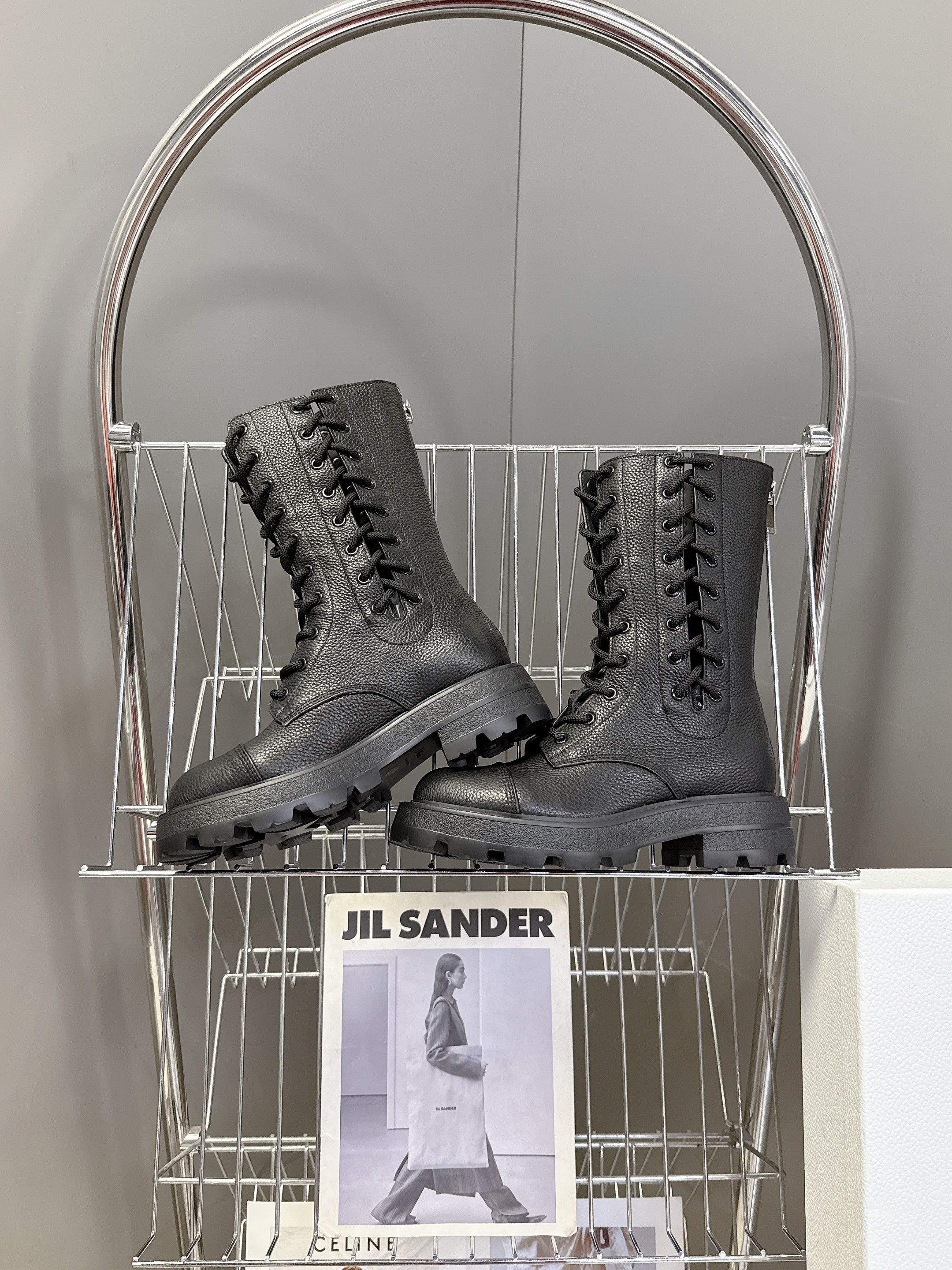CD D-Major Boot Taupe Mix Black Calfskin And Denim Fabric