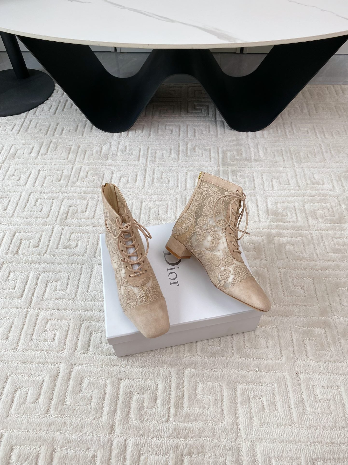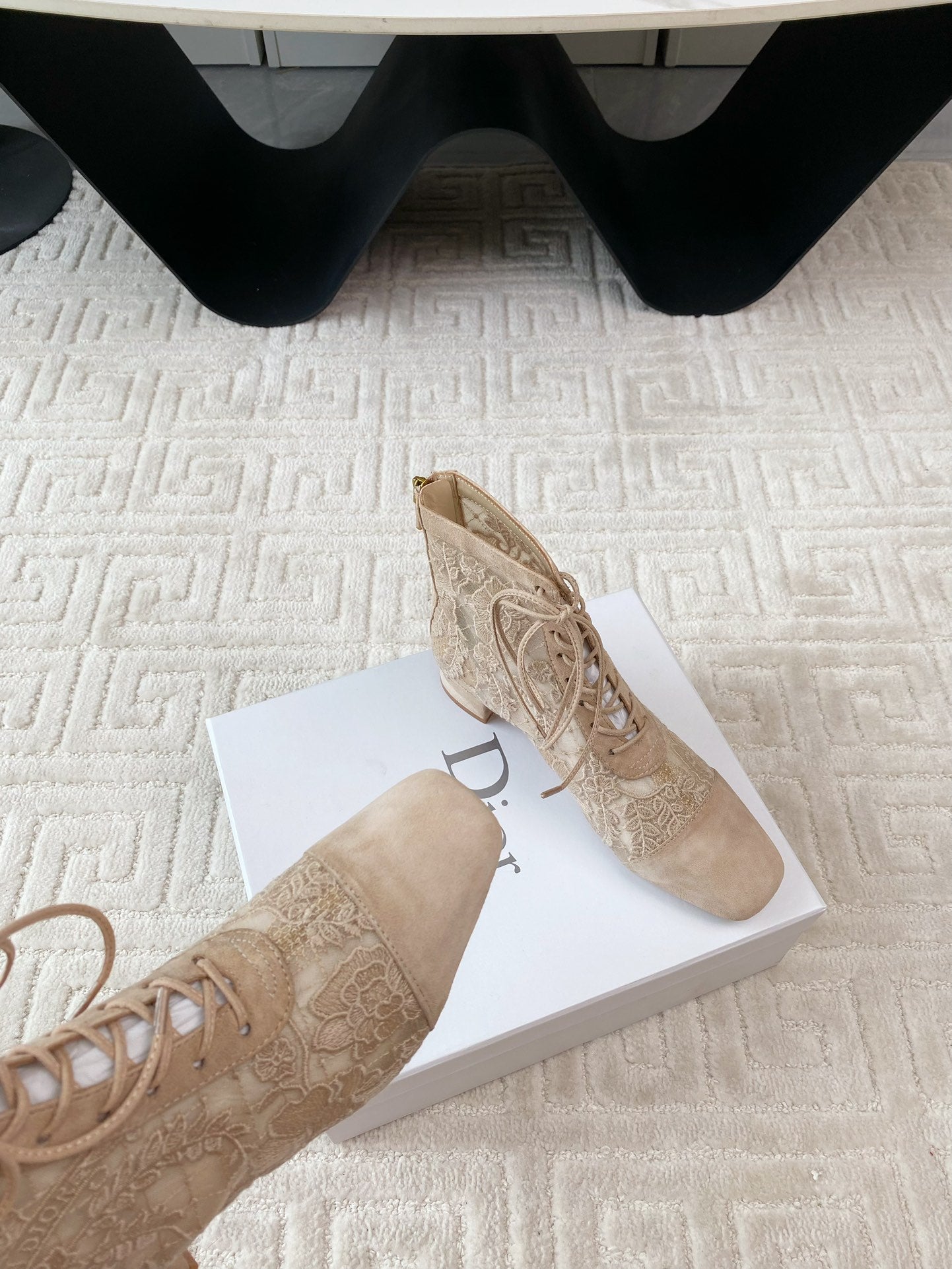 Dior 2025 Capture Heeled Ankle Boot Black Beige Mesh Sheepskin 508531