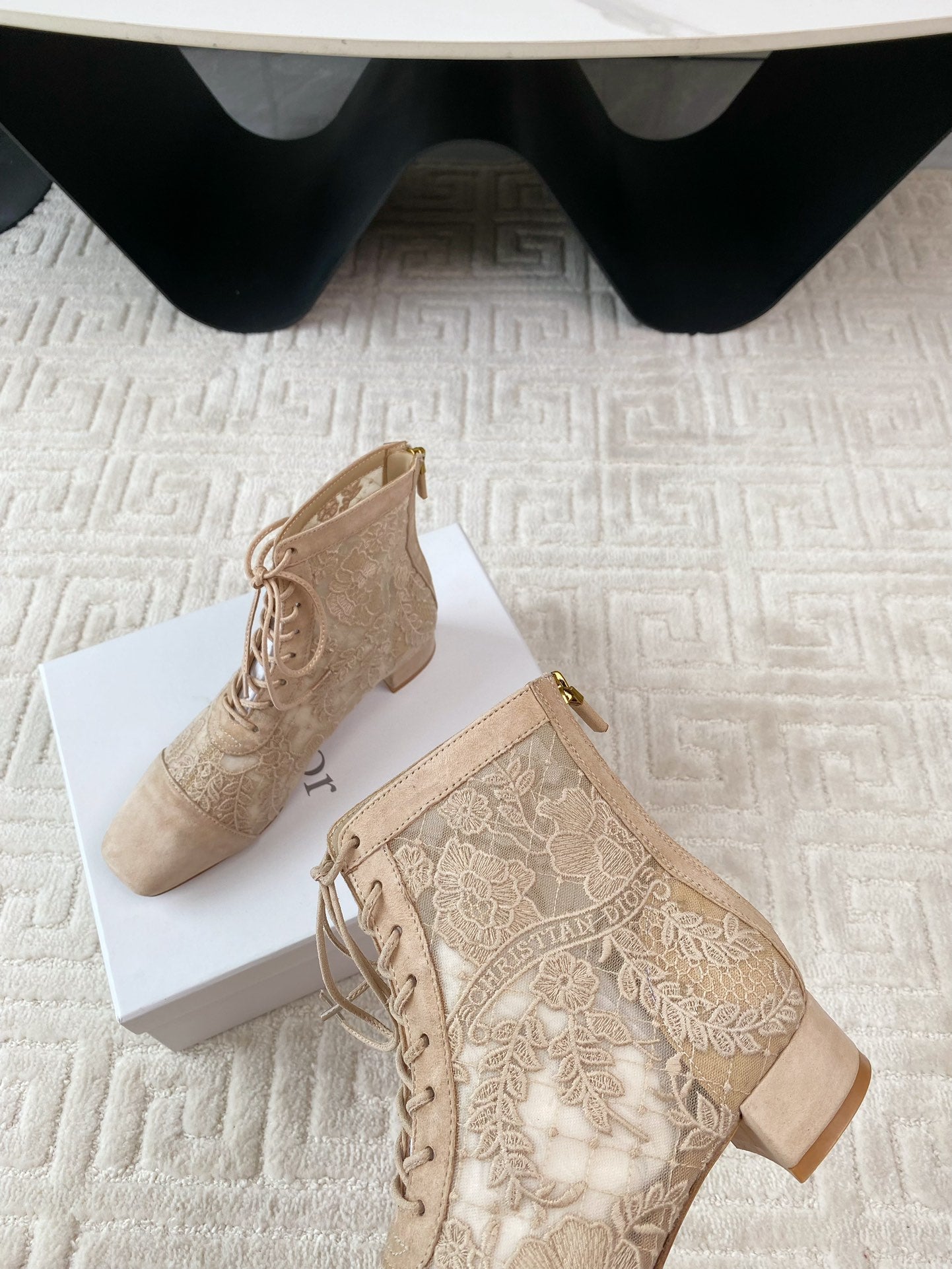 CD Naughtily-D Heeled Ankle Boot Beige Transparent Mesh Roses Embroidery And Suede