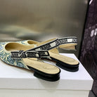 JAdior Slingback Flat Duck Blue Embroidered Cotton with Gold-Tone Metallic Thread