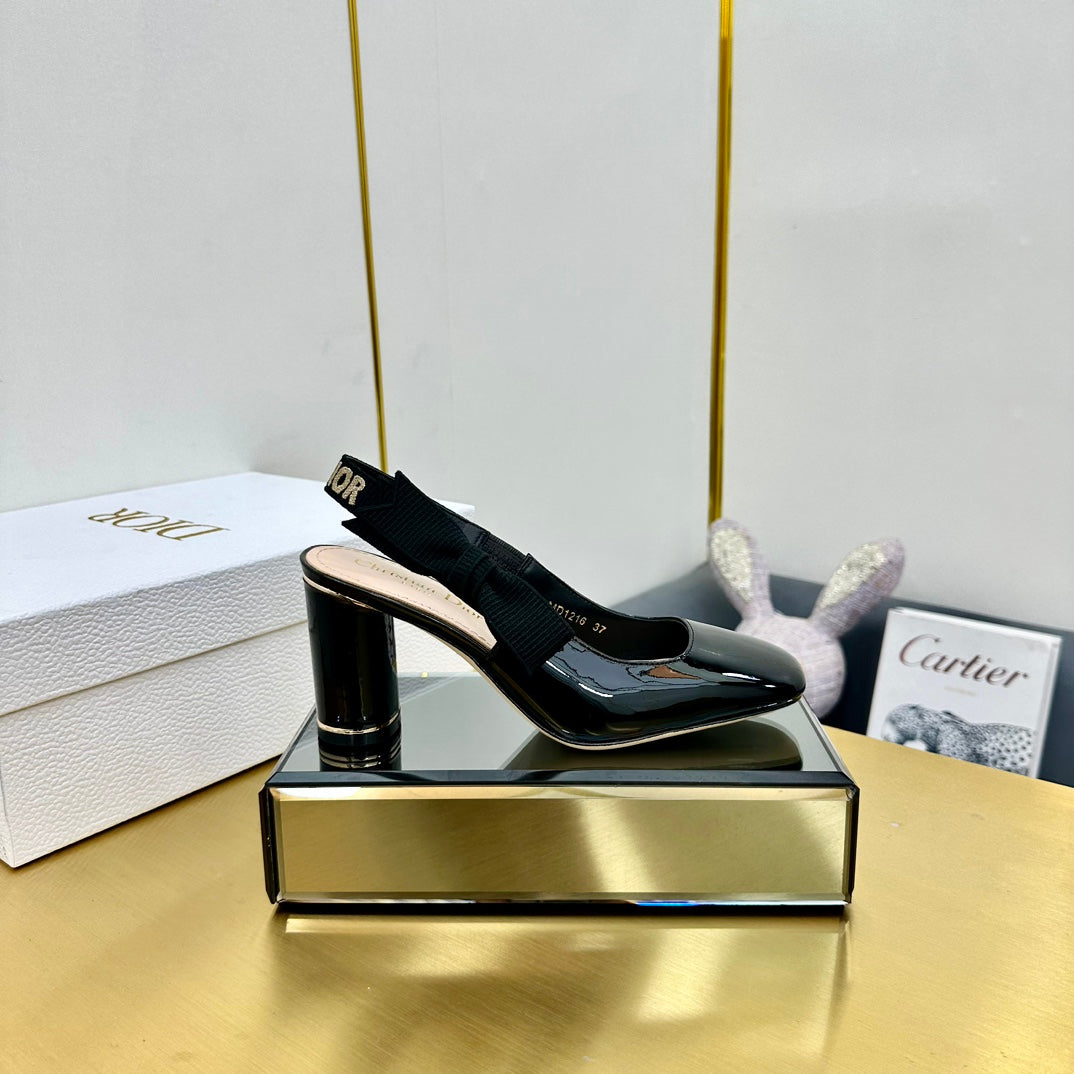Miss Dior Paris Slingback Pump In Glossy Black Lambskin 111024