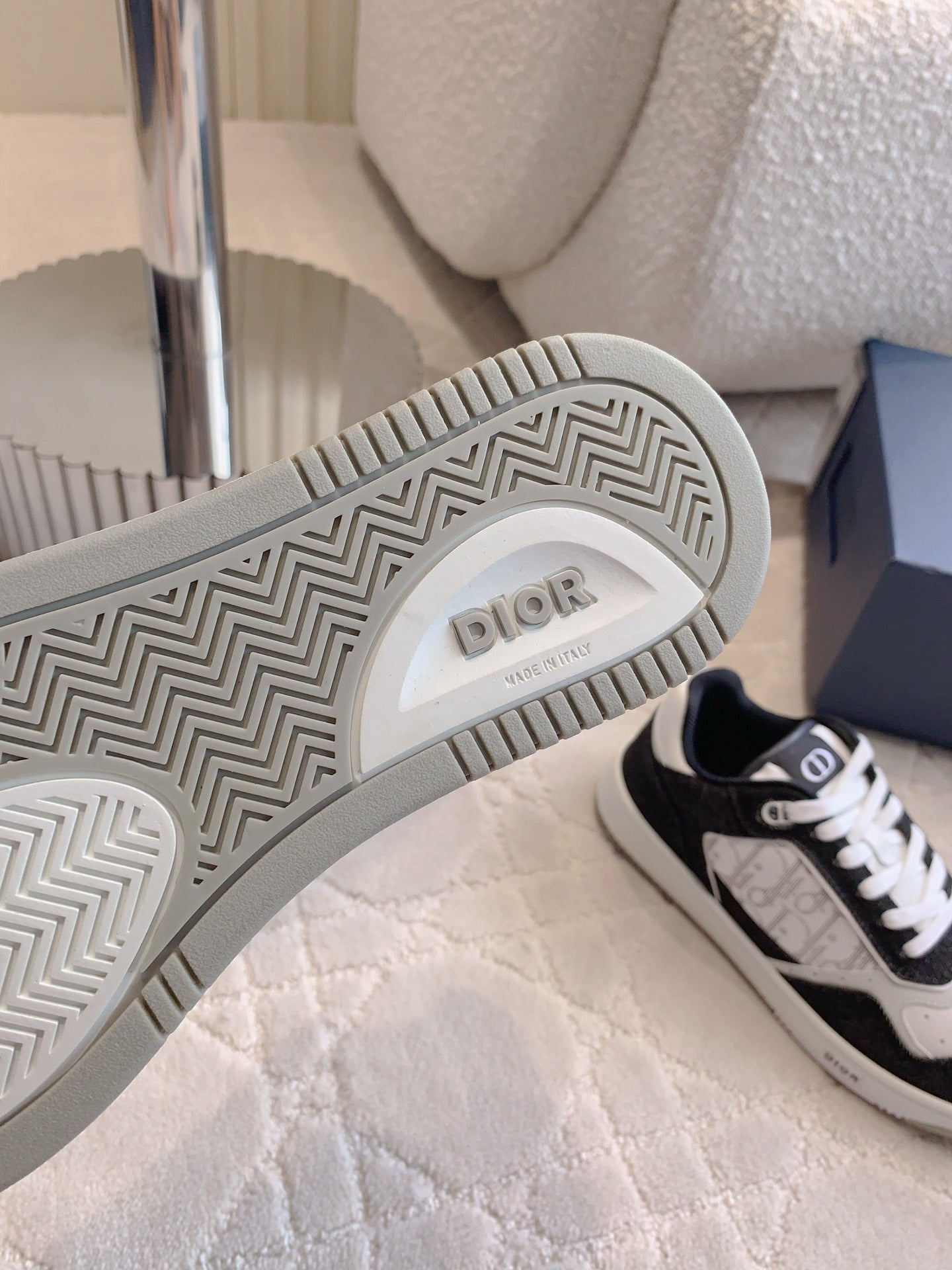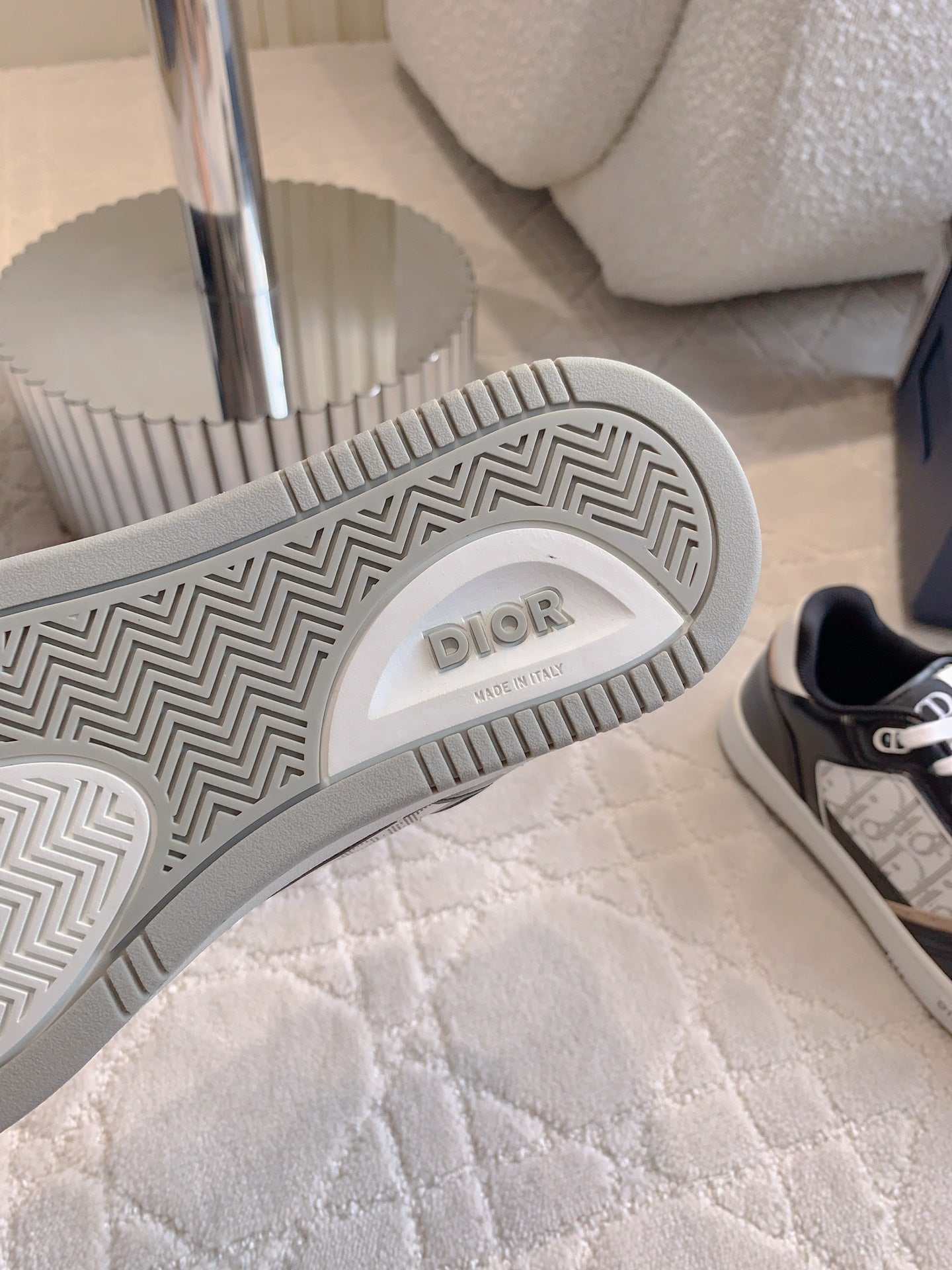 CD B27 Low-Top Sneaker Black Grey Mix White Calfskin And Oblique Jacquard Fabric