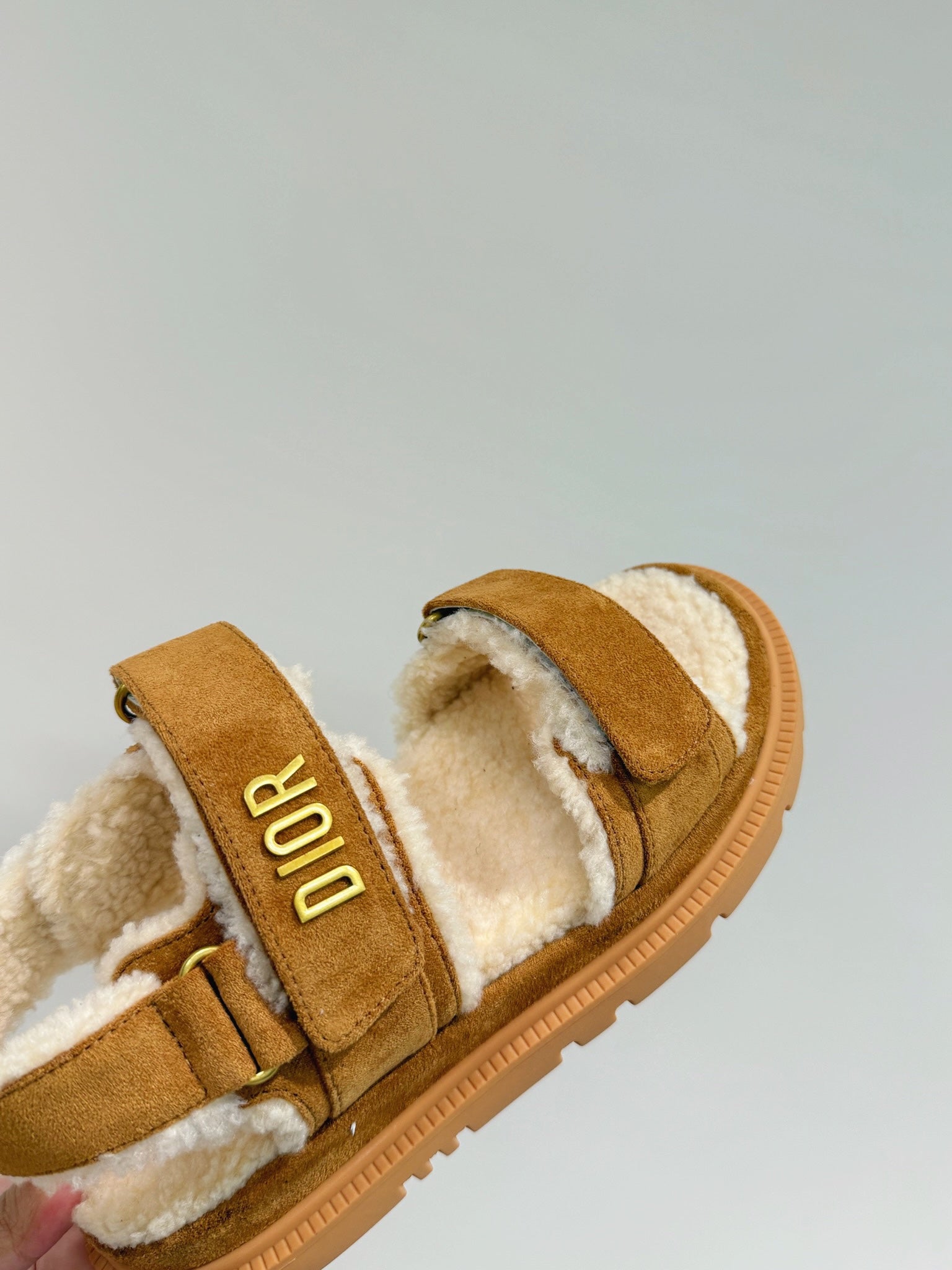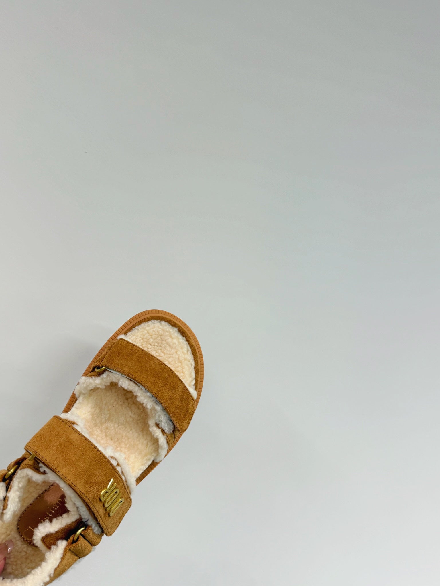Dioract Sandal In Caramel Suede And Wool Fleece Lining 109871