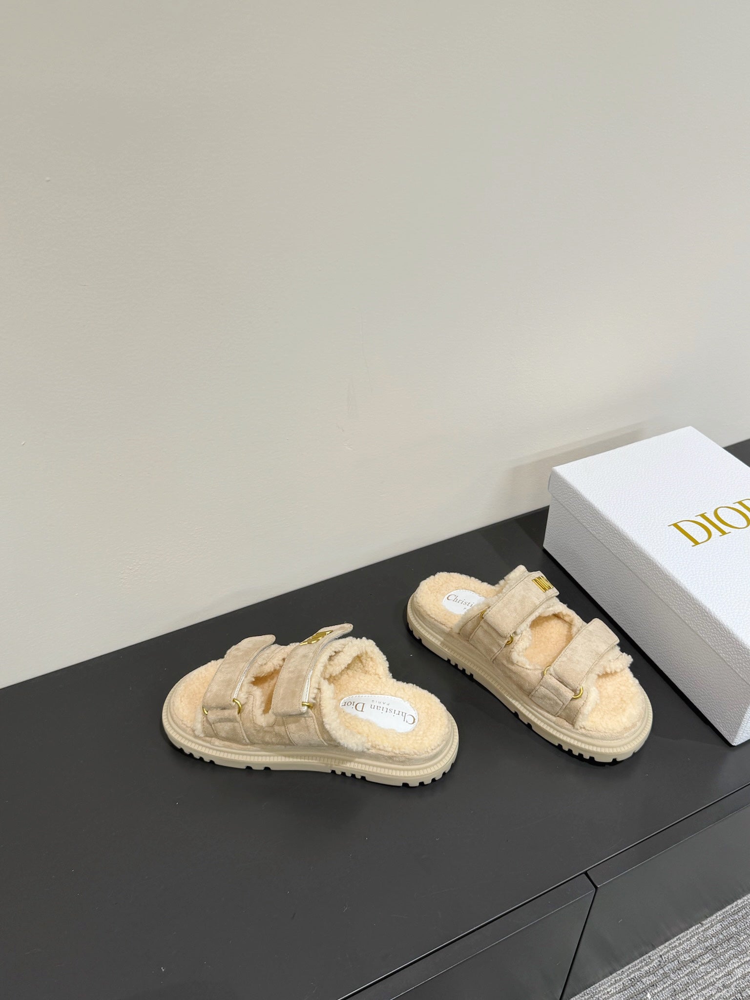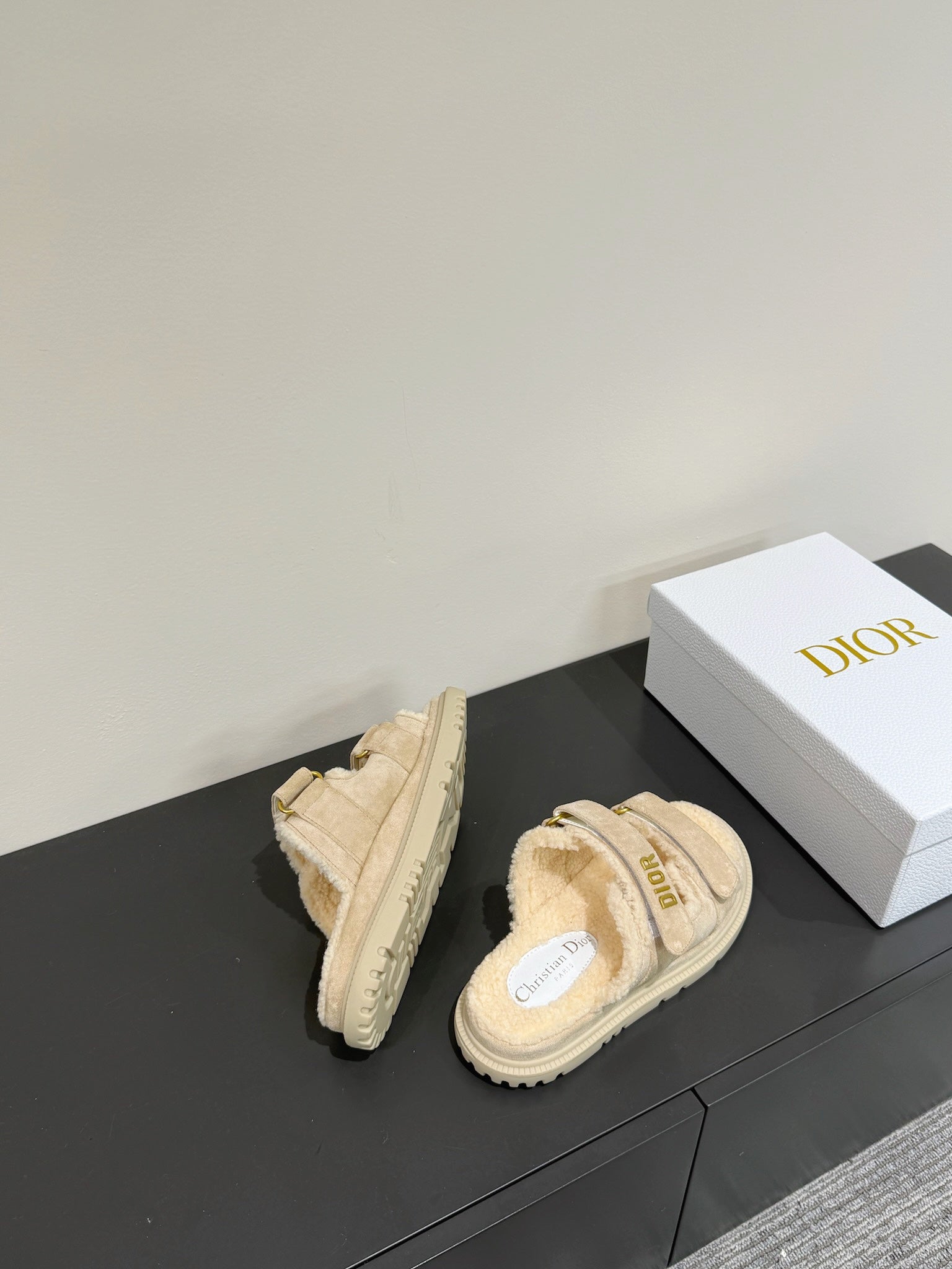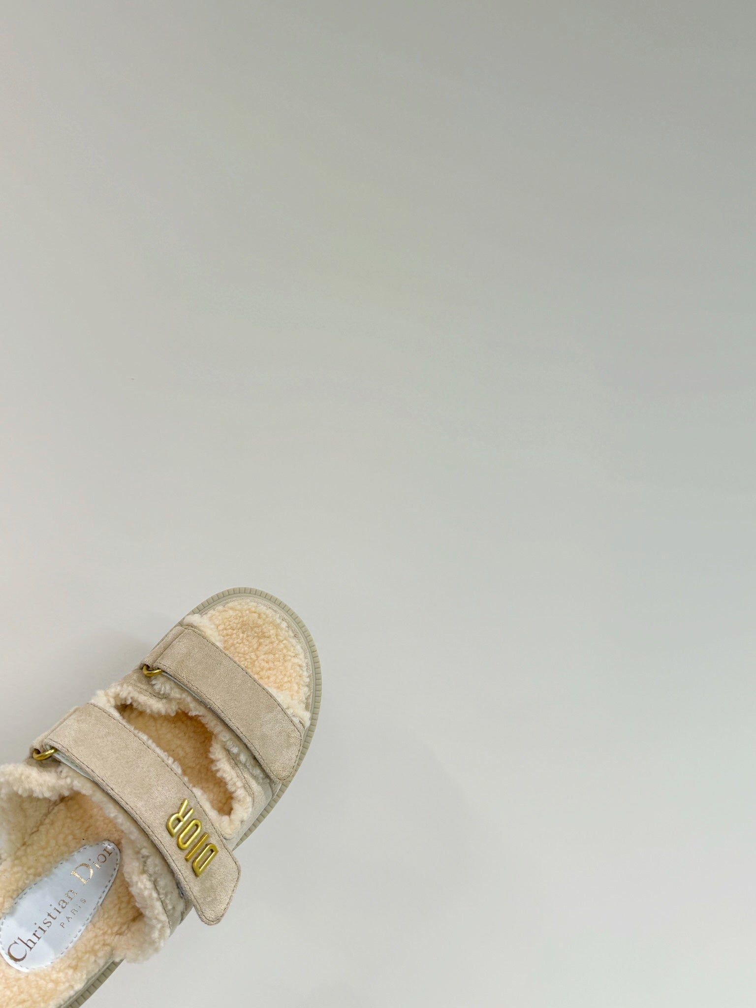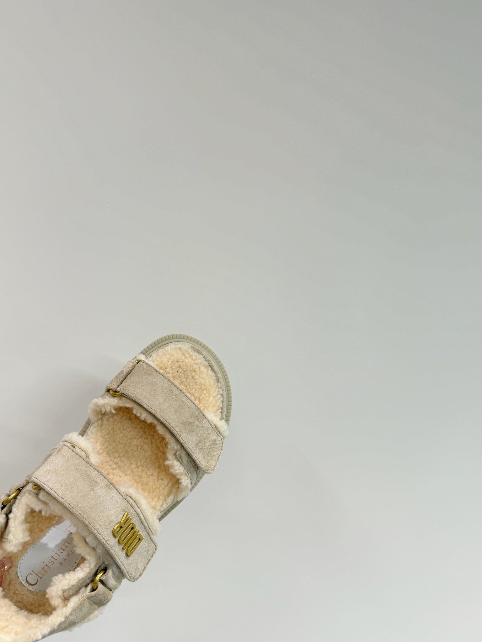 Dioract Sandal In White Suede And Wool Fleece Lining 111050