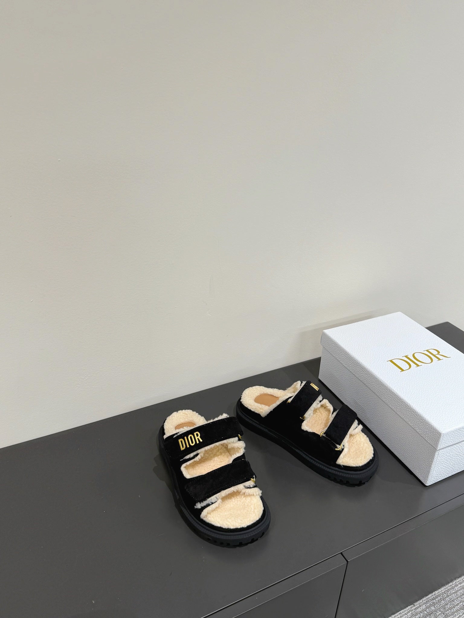 Dioract Sandal In Black Suede And Wool Fleece Lining 109869
