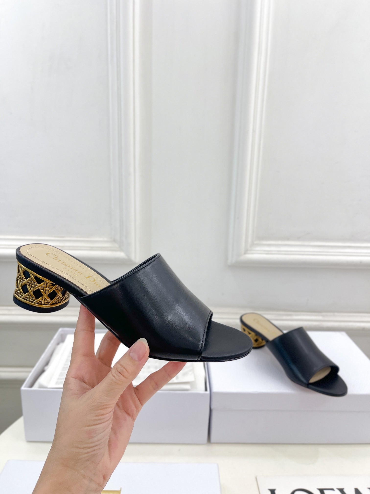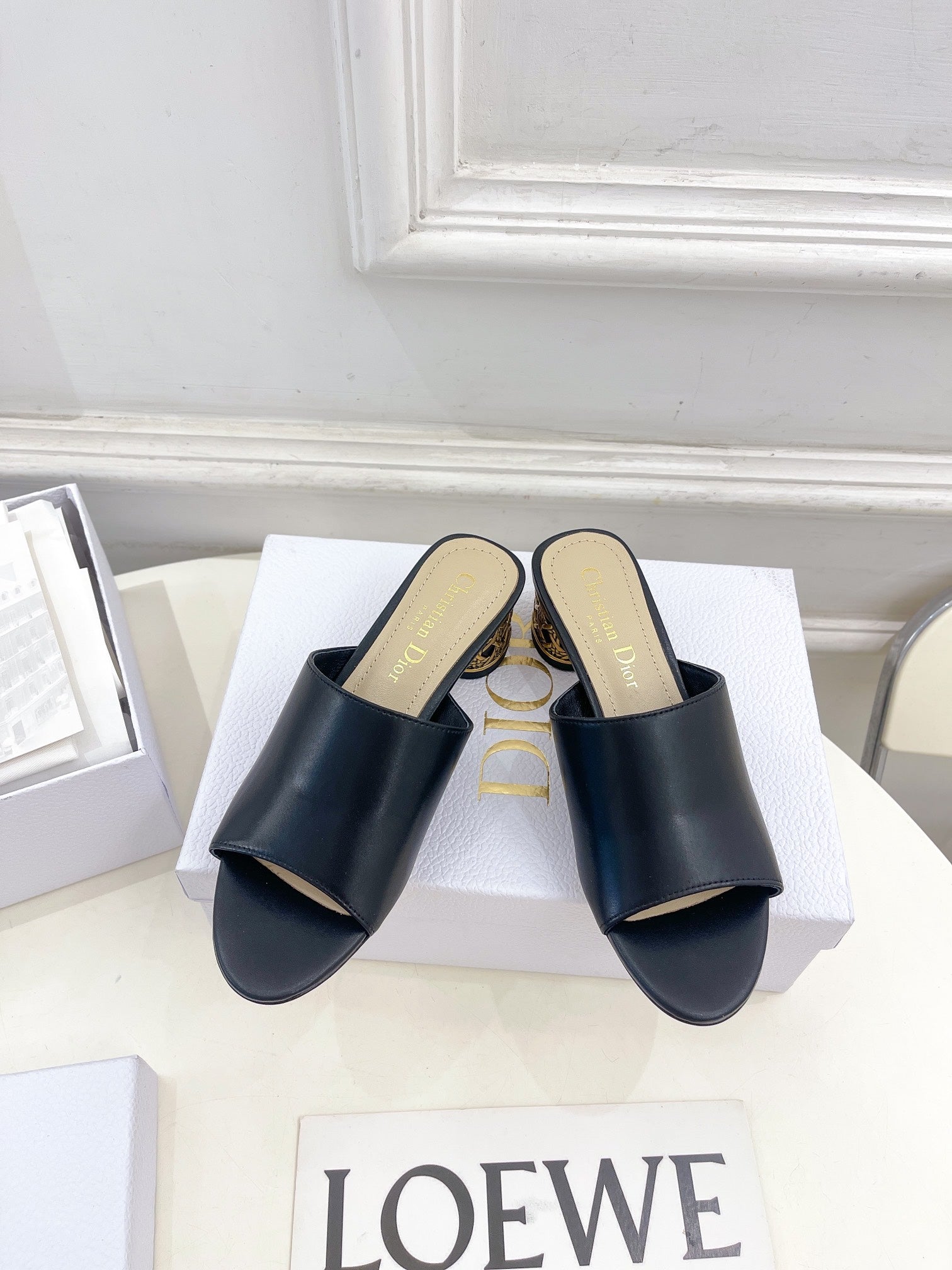 CD Icon Heeled Slide 40mm Brown Calfskin